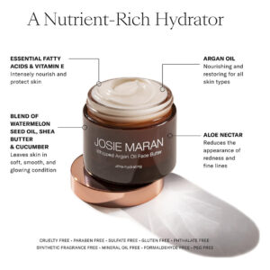 Bom para você. Bom para o planeta. Josie Maran é pioneira em produtos de beleza limpos e movidos a óleo de argan. Nossos produtos para a pele de origem sustentável, manteigas corporais suculentas e aromas de origem natural são feitos com ingredientes naturais para celebrar a coragem radical por trás da pele nua. – Este kit de hidratação de 3 peças inclui nosso óleo de argan 100% puro, manteiga facial com óleo de argan batido e manteiga corporal ultra-hidratante. Dê à sua pele uma hidratação intensa da cabeça aos pés. – O que há dentro – óleo de argan 100% puro, manteiga de karité, óleo de abacate e extrato de chá branco. A manteiga facial e corporal é leve, com uma textura aveludada que é absorvida instantaneamente sem deixar resíduos pegajosos. – Óleo de argan – Ao contrário de outras manteigas para rosto e corpo, nossos cremes batidos para rosto e corpo aproveitam os ácidos graxos essenciais do óleo de argan orgânico para obter benefícios hidratantes. – Como usar – Use este creme facial hidratante para suavizar a pele do pescoço para cima e a manteiga corporal hidratante do pescoço para baixo. Como última etapa de sua rotina de cuidados com a pele para manter a hidratação, aqueça de 2 a 4 gotas do óleo de argan puro nas mãos e use no rosto e no cabelo. – Beleza em primeiro lugar – Na Josie Maran, todos os nossos produtos para a pele e o corpo são veganos e livres de crueldade. Buscamos ingredientes eficazes, naturais e sustentáveis que nunca incluam sulfatos, ftalatos, fragrâncias sintéticas ou protetores solares químicos.