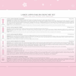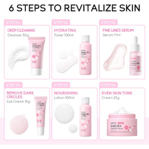 Efeito: hidratante/uniforme do tom de pele/nutritivo Descrição: 1. Limpador contendo extrato de flor de Prunus Lannesiana e vários extratos vegetais, ele pode limpar profundamente os poros, a sujeira, a maquiagem e tornar a pele limpa. 2. Tônico: os principais ingredientes do extrato de flor de Prunus Lannesiana podem hidratar profundamente a pele e restaurar a elasticidade da pele. 3. Creme para os olhos: selecionado entre extrato de flor de Prunus Lannesiana, ácido ascórbico e extrato de fruta Prunus Mume, este creme para os olhos pode atenuar as olheiras para deixar seus olhos claros. 4. Sérum: extratos de sakura e vitamina C podem efetivamente reduzir os poros e equilibrar a oleosidade secreção, suaviza a pele e suaviza a pele. 5. Loção: contendo extrato de flor de Prunus Lannesiana, hialuronato de sódio, manteiga de butyrospermum parkii (karité) e outros ingredientes hidratantes, pode hidratar e suavizar a pele. 6. Creme Os principais ingredientes do extrato de Sakura podem repor os nutrientes da pele e fortalecer a barreira cutânea. Capacidades: 1. Limpador 50 g/1,76 onças 2. Tônico 100 ml 3. Sérum 17 ml 4. Creme para os olhos 15 g/0,53 onças 5. Loção 100 ml 6. Creme 25 g/0,88 onças Etapas de uso: creme de limpeza, sérum, creme de olhos, creme essencial, pacote: conjunto de cuidados com a pele JAPAN SAKURA, 6 unidades (a caixa está incluída) – Rico em extrato de flor de cerejeira: as flores de cerejeira têm efeitos hidratantes e hidratantes no pele. Eles contêm vitaminas naturais A, B e E, que podem ajudar a reduzir os poros, equilibrar a secreção de óleo facial, manter a elasticidade da pele e reduzir as linhas finas. – Processo completo de cuidado facial: o presente de beleza para a pele da LAIKOU pode fornecer tudo o que você precisa para cuidar do rosto: limpador, tônico, loção, soro, creme para os olhos e creme facial. – Limpa e nutre a pele: kit de viagem de produtos de higiene pessoal da LAIKOU é infundido com extrato de flor de cerejeira. Em primeiro lugar, use o limpador de flores de cerejeira para limpar o rosto. Em segundo lugar, aplique a essência da flor de cerejeira, o creme facial, o tônico e a loção para hidratar a pele seca. Por fim, use o creme para os olhos para reduzir as olheiras e desbotar as linhas finas. Este é um presente ideal para ajudar você a manter a pele limpa e jovem. – Tamanho adequado para viagens: essa maquiagem para viagens e os produtos internos foram todos projetados para serem adequados para viagens. Você pode levá-los aonde quer que vá! – Conjunto de presentes femininos: no Natal, Dia dos Namorados, Dia das Mães e Aniversário, considere dar este kit facial como presente para sua mãe, amante, filha e irmãs. Isso lhes trará beleza e saúde, e você pode imaginar como eles serão felizes.