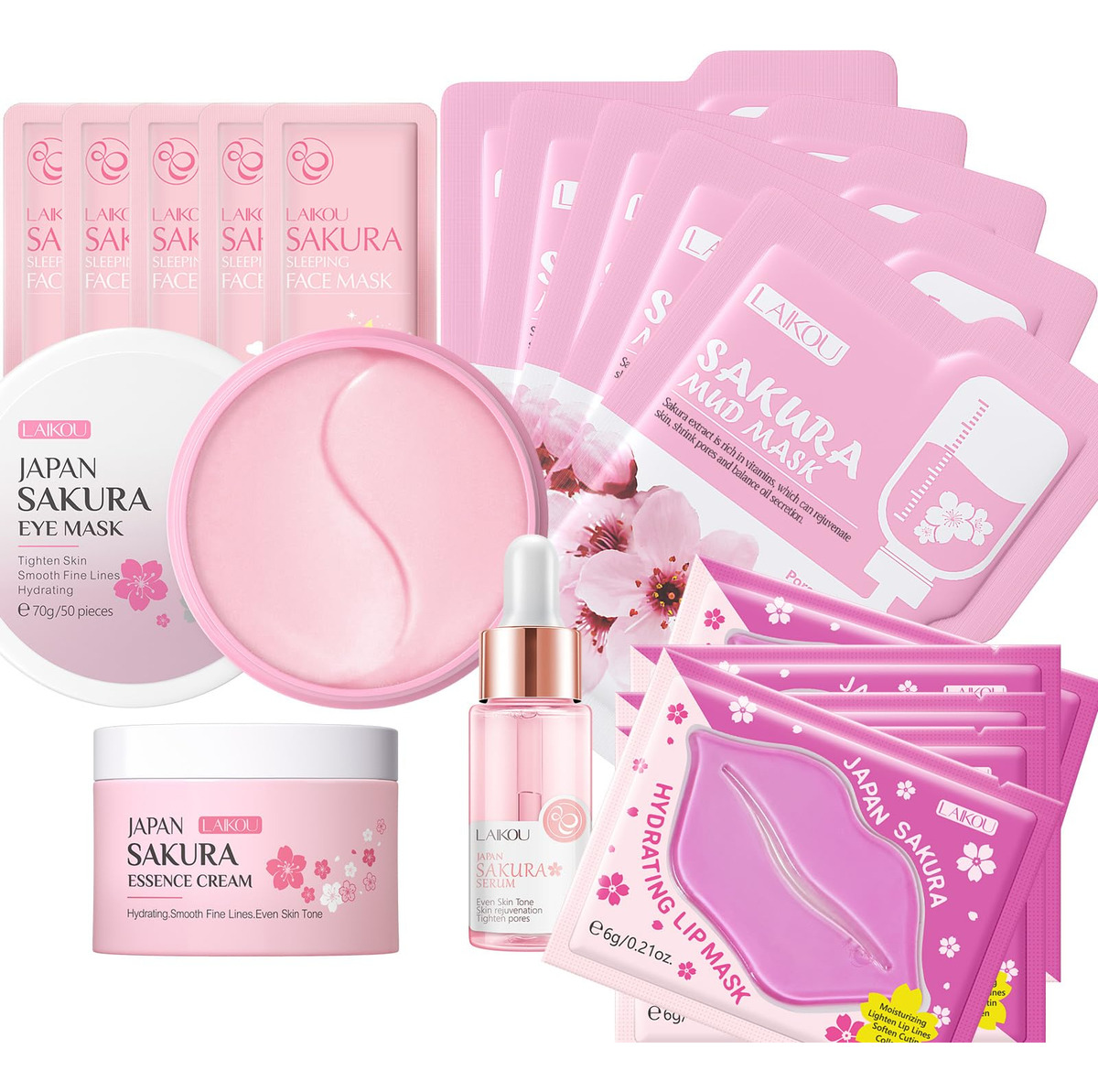 Cuidados com a pele LAIKOU para adolescentes, conjuntos de cuidados com a pele Sakura, conjuntos de cuidados com a pele para adolescentes, conjuntos de presentes para mulheres, conjuntos e kits de cuidados com a pele, soro facial, máscara para dormir, máscara para olhos, máscara de lama, máscara labial*5 – Cuidados com a pele LAIKOU para adolescentes, conjuntos de cuidados com a pele Sakura para pele adolescente…