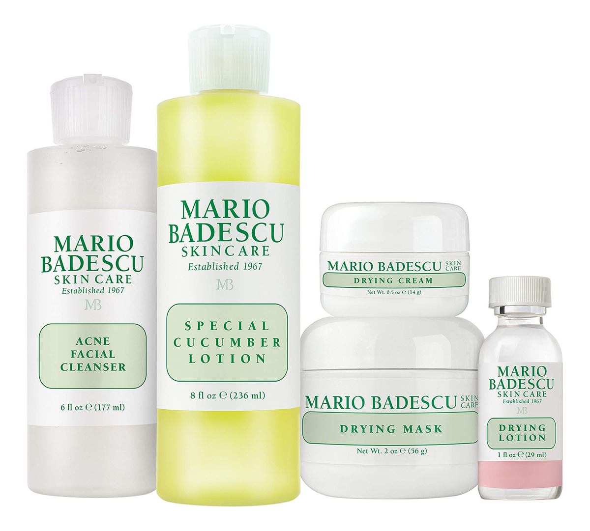Kit facial Mario Badescu para controle de acne com limpador facial, tônico, máscara, loção e creme secantes | Conjunto de cuidados com a pele ideal para pele mista, problemática ou oleosa – Este kit contém nosso NOVO limpador facial para acne formulado com ácido salicílico – Nossos famosos tratamentos de acne para espinhas – E uma máscara clareadora, absorvente de óleo e que fecha os poros