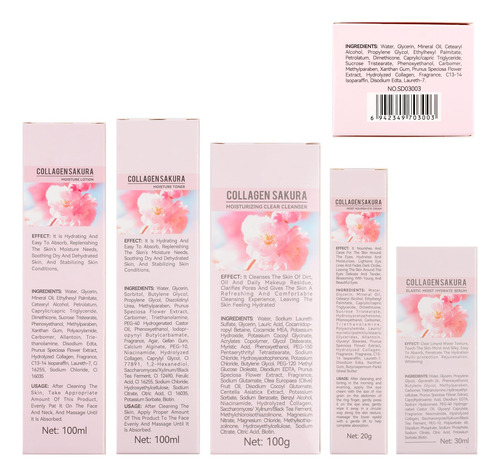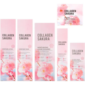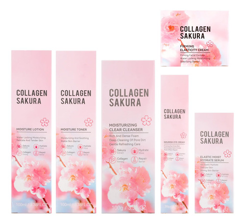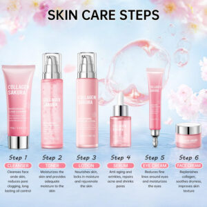 conjunto de cuidados com a pele enriquecido com extrato de sakura, melhora a elasticidade da pele.
