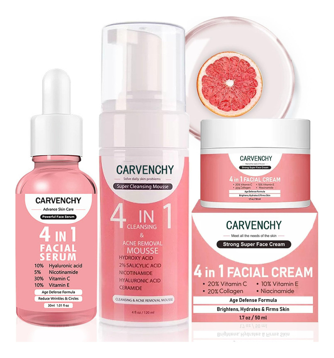 O conjunto de 3 peças de cuidados com a pele inclui 1. Limpador facial 120 ml 2. Sérum facial 30 ml 3. Creme facial de 50 ml Ingredientes: vitamina C, vitamina E, ácido hialurônico e nicotinamida Hidratação profunda diária: 1. O kit facial de cuidados com a pele com essência de vitamina C pode efetivamente melhorar a pele seca e opaca, reduzir rugas, manchas e marcas, equilibrar a secreção de óleo, reduzir os poros e manter a pele úmida e brilhante por muito tempo 2. Este conjunto de cuidados com a pele com vitamina C é rico em vitamina C, que pode nutrir profundamente a pele e hidratar a pele seca. Textura lisa e não gordurosa, fácil de absorver 3. < br>Este conjunto de cuidados com a pele com vitamina C pode endurecer a pele, suavizar rugas profundas, reduzir a geração de linhas finas e manter a pele hidratada, macia e suave .< br> Este conjunto de cuidados com a pele passo a passo fará com que seu rosto fique macio, delicado e hidratado, tornando-o perfeito para peles secas, oleosas e sensíveis 5. Este conjunto de presentes de beleza com vitamina C de 3 peças é um presente ideal para amigos, familiares e entes queridos, como presentes de aniversário, presentes de Dia das Mães, presentes de Dia dos Namorados, presentes de aniversário, presentes de gratidão e presentes de Natal. Kit de rotina de cuidados com a pele de uso correto para mulheres: Etapa 1: Mousse de limpeza facial com vitamina C Limpe o óleo, a sujeira e os resíduos cosméticos da pele, tornando-a macia e delicada Etapa 2: Essência facial de vitamina C Refrescando e hidratando o rosto, injetando umidade na pele, nutrindo, endurecendo e reduzindo a secagem ness – Kit hidratante para cuidados com a pele – Nosso conjunto de 3 peças para cuidados com a pele tem os itens hidratantes necessários: incluindo 1 mousse de limpeza facial, 1 hidratante soro facial e creme hidratante para o rosto. Estes kits de cuidados com a pele passo a passo farão com que seu rosto fique macio, delicado e hidratado, mas não ficará pegajoso ou sobrecarregado. – Conjunto de cuidados com a pele antienvelhecimento – Nosso conjunto de cuidados com a pele hidratante é rico em vitamina C, vitamina E, niacinamida e ácido hialurônico, proporcionando hidratação instantânea, melhorando o colágeno, melhorando a elasticidade da pele e melhorando efetivamente o envelhecimento da pele, incluindo rugas, blasto manchas, relaxamento da pele, ressecamento e tom de pele irregular. – Conjunto antioxidante de cuidados com a pele para mulheres – A vitamina C é um poderoso antioxidante conhecido por retardar o envelhecimento da pele, reduzir manchas e pigmentação excessiva. Este kit de rotina de cuidados com a pele para mulheres pode efetivamente melhorar a pele opaca e seca, reduzir rugas e manchas e manter a pele úmida e brilhante por muito tempo. – Esconda os poros grossos – Nosso kit de cuidados faciais contém vitamina E natural e ácido hialurônico, que podem hidratar e melhorar os poros secos, ásperos e ásperos e a pele envelhecida. Aumenta a vitalidade da pele reduzindo o embotamento e suavizando a pele desidratada. Este kit delicado de cuidados com a pele fará com que seu rosto se sinta jovem e cheio de energia. — Conjunto de presentes para cuidados com a pele — Este conjunto de presentes de beleza com vitamina C é perfeito para compartilhar com amigos, familiares e entes queridos, especialmente como presentes de aniversário, presentes de Dia das Mães, presentes de Dia dos Namorados, presentes de aniversário, presentes de gratidão e presentes de Natal. Isso se aplica não apenas às mulheres, mas também aos homens.