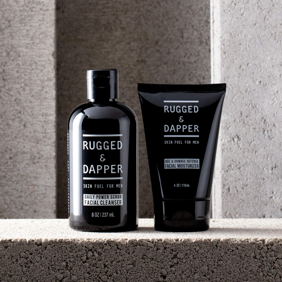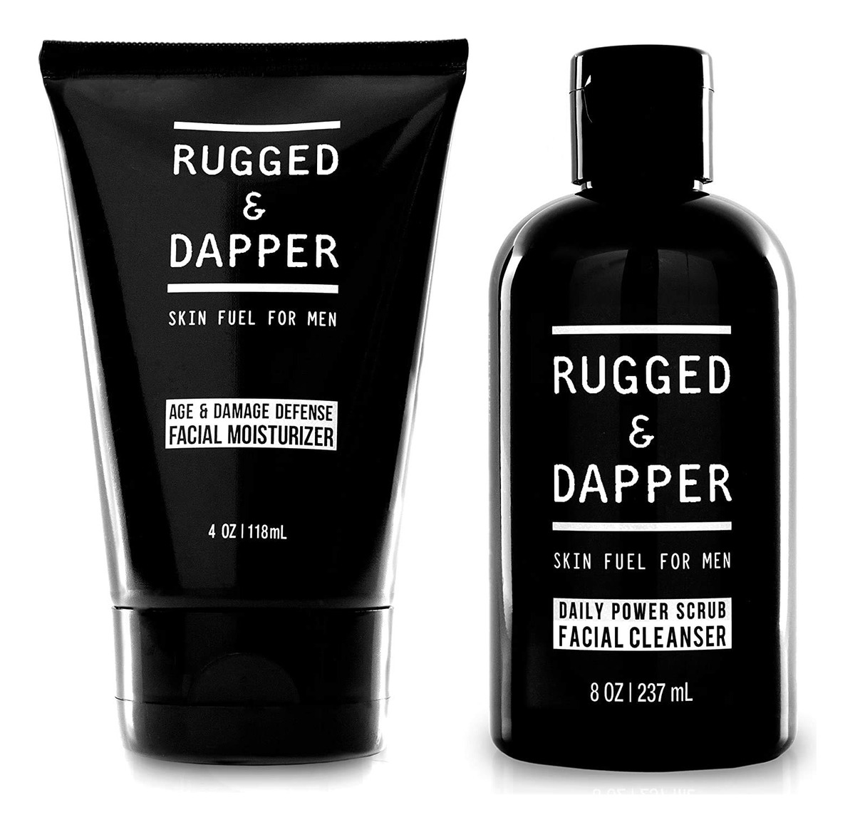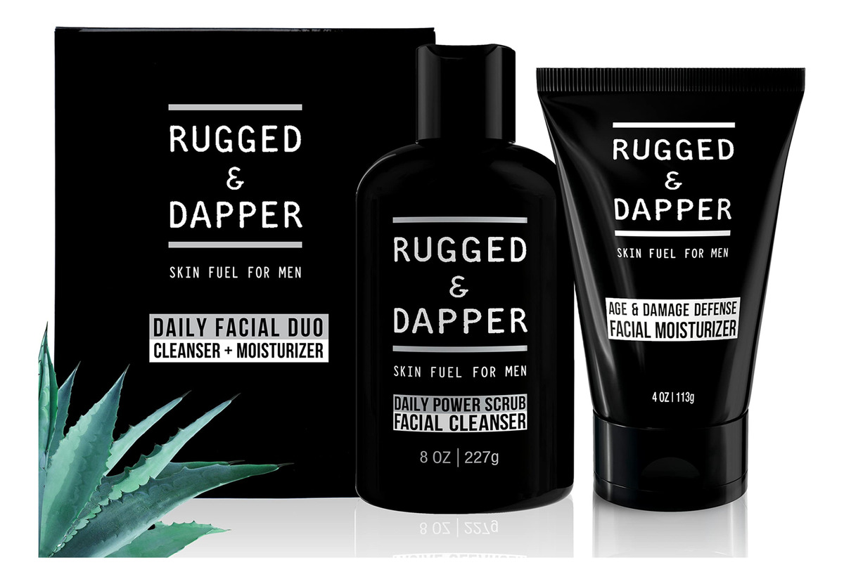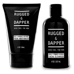 Conjunto de cuidados com a pele Rugged & DAPPER Daily Duo para homens | Inclui hidratante Age + Damage Defense e sabonete facial Daily Power Scrub — Formulado para homens: ataca a sujeira, o excesso de oleosidade e fuligem para eliminar erupções cutâneas e acne, sem remover a umidade da pele. — Para todas as idades e a maioria dos tipos de pele: tez normal, sensível, oleosa, áspera, seca, mista e propensa a acne. — Natural e orgânica: Ingredientes ricos em nutrientes emprestados do exterior, como Aloe Vera, Vitamina C, Casca de Salgueiro e Raiz de Bardana, liberam vitaminas e minerais potentes para regenerar a pele. – Nosso esfoliante energético diário O limpador facial foi desenvolvido para cobrir todas as bases e é parte integrante de qualquer regime de higiene masculina. – Nosso hidratante Age & Damage Defense é um poderoso hidratante facial e uma loção pós-barba calmante. É sua primeira linha de defesa contra o aparecimento de linhas finas, rugas, tom de pele irregular e irritação pós-barba.