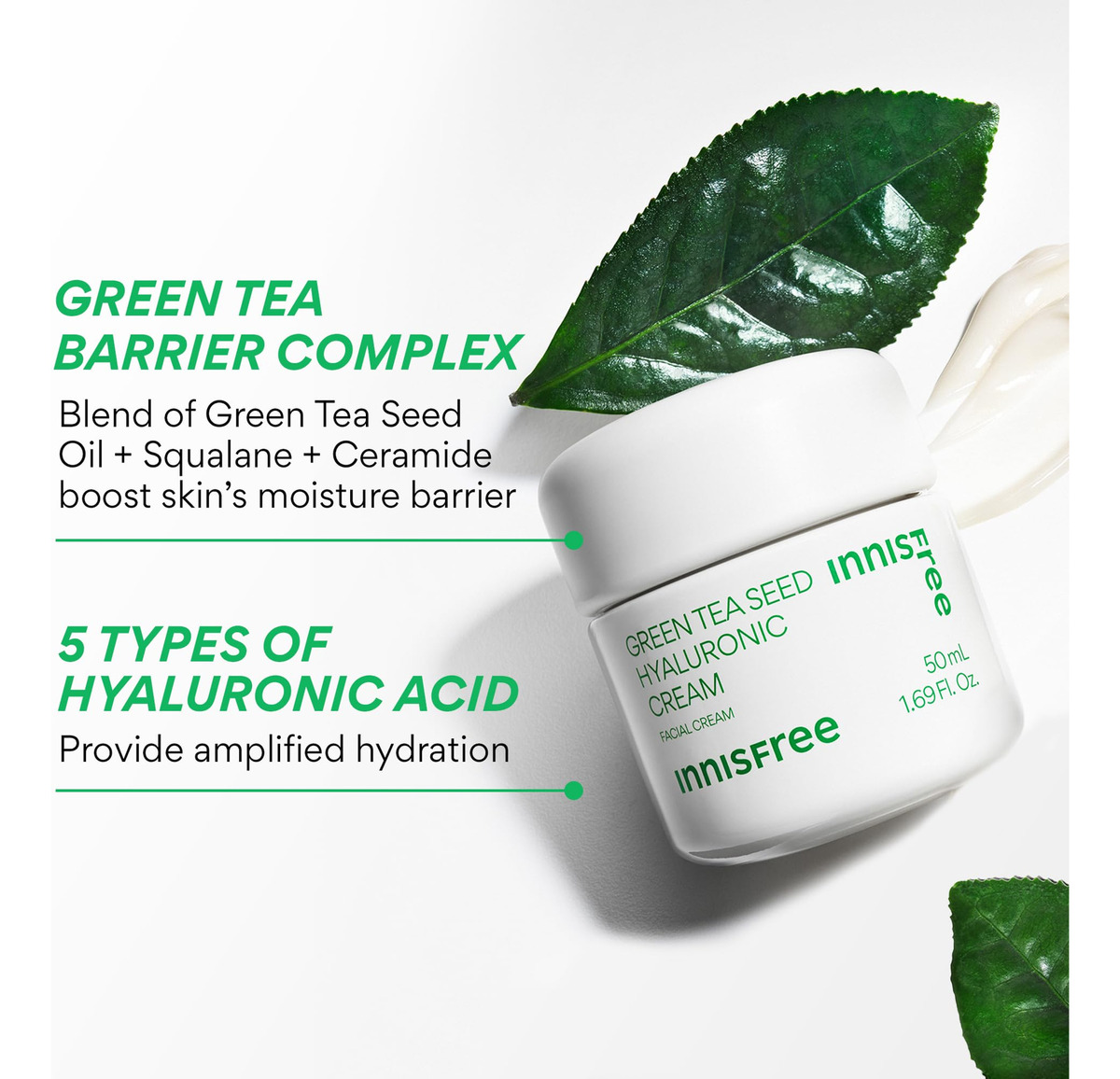 innisfree Double Hydration Duo, sérum hialurônico e creme hialurônico, sérum coreano e conjunto hidratante para pele hidratada e brilhante — uma dupla de cuidados com a pele de chá verde com sérum e creme diários. Hidrate sua pele com um sérum profundamente hidratante alimentado por nosso icônico chá verde e ácido hialurônico. Melhore sua barreira de umidade com nosso creme favorito para hidratação e brilho duradouros.