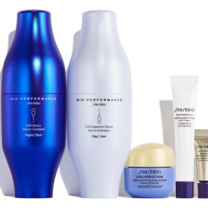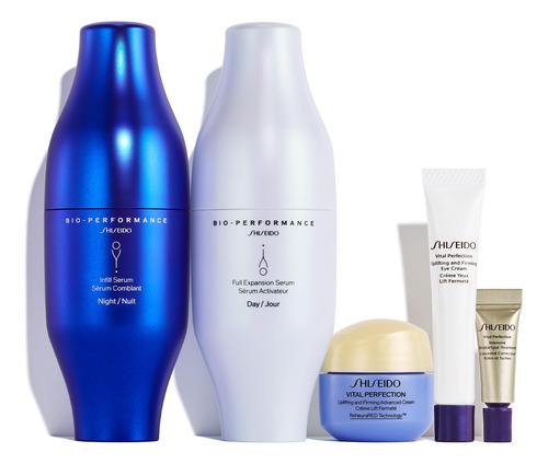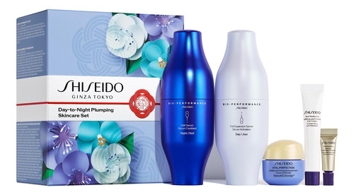 Conjunto de cuidados com a pele que preenche o dia a noite da Shiseido — Conjunto de cuidados com a pele para o dia a noite — Pele visivelmente rechonchuda com este conjunto de presentes de alto desempenho para cuidados com a pele. Experimente o revolucionário sistema diurno e noturno de duas etapas para uma pele profundamente hidratada e firme. – O QUE ESTÁ INCLUÍDO – Séruns de preenchimento de pele Bio-Performance em tamanho real para hidratar e dar volume. Amostras de tamanho luxuoso de Advanced Cream para uma pele revigorada e com tons uniformes. Creme para os olhos para firmeza visível. Tratamento intensivo contra rugas e manchas escuras. – COMO USAR – Use conforme as instruções de manhã e à noite.