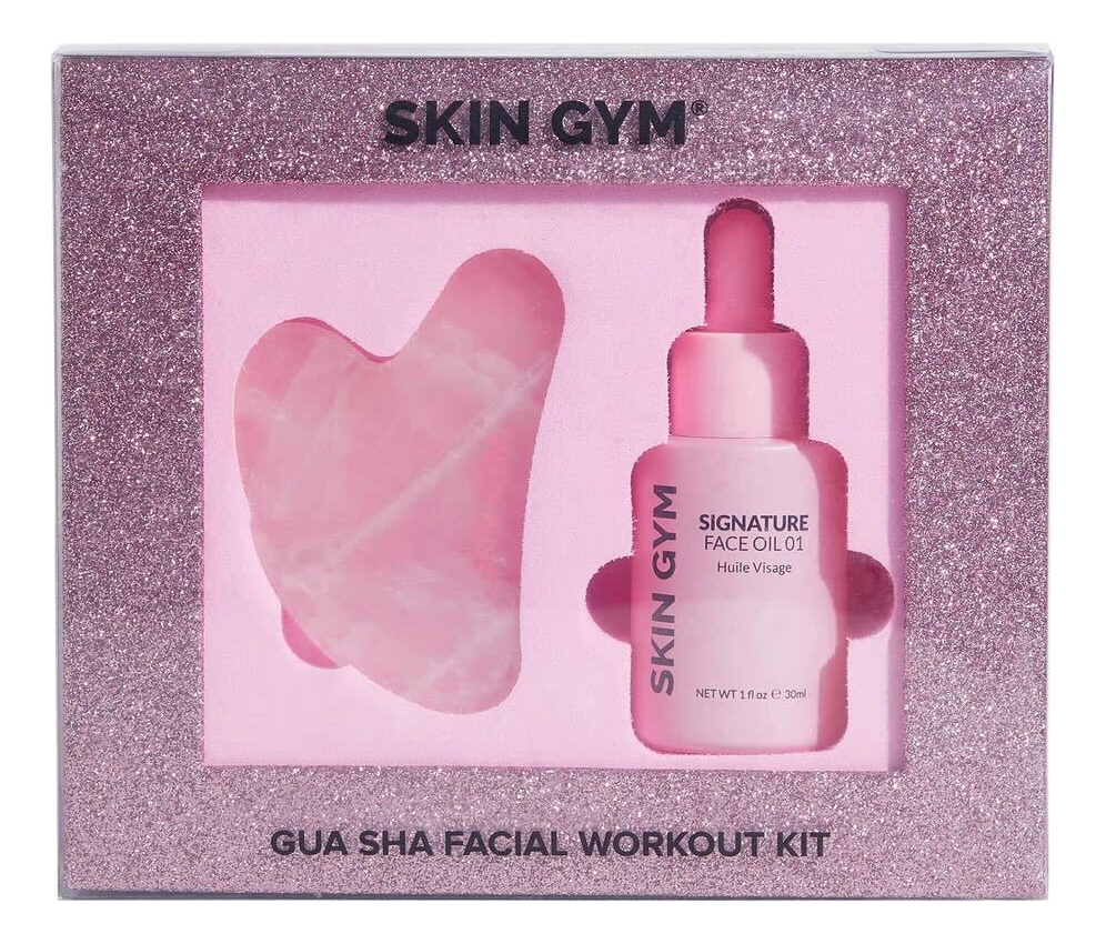 Kit de óleo Skin Gym Rose Quartz Gua Sha & Signature | Holiday Radiance Boosting Duo | Contorno facial e rejuvenescimento da pele | Óleo facial esfoliante, suavizante e hidratante tudo-em-um | Compatível de manhã e à noite — Conjunto Holiday Radiance: duplique o charme rosado com nossa dupla de gua sha e óleo de rosa. Melhore suas feições com essa combinação perfeitamente rosa, oferecendo o dom de uma pele brilhante. Abrace o espírito natalino com esta combinação deliciosa e benéfica de cuidados com a pele. – Amada ferramenta de beleza: nosso gua sha adere perfeitamente às curvas faciais, garantindo uma tez impecável. Combinado com óleo de rosa, ele desliza sem esforço, promovendo relaxamento e uma aparência radiante para as férias. Abrace essa dupla poderosa para uma experiência elevada de cuidados com a pele. – Óleo facial tudo-em-um: nossa mistura exclusiva faz tudo! Rejuvenesça sua pele com habilidades hidratantes, suavizantes e esfoliantes. Use-o sozinho ou com outros produtos essenciais para a pele para a transformação definitiva da pele. Use este óleo superpoderoso para uma tez radiante e revitalizada. – Óleo facial exclusivo: experimente a riqueza da jojoba, proporcionando benefícios calmantes e hidratantes. Abrace o poder da rosa mosqueta, abundante em ômega 3, 6, 9 e antioxidantes. Nutra sua pele com sementes de avelã e damasco, repletas de vitamina A e E. Revele uma tez radiante e revitalizada com esta mistura rica em nutrientes. – Instruções de uso: aplique o óleo na pele limpa e seca para obter melhores resultados. Maximize seu treino facial combinando-o com sua ferramenta de beleza favorita. Desfrute da melhor experiência de cuidados com a pele com essa combinação perfeita, revelando uma tez rejuvenescida e radiante.