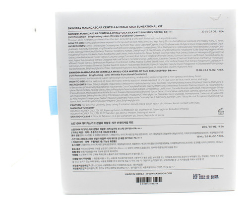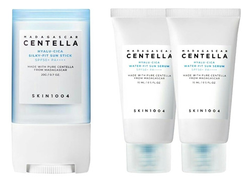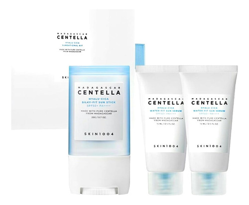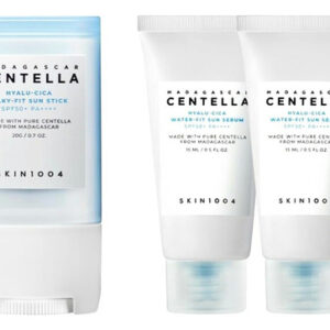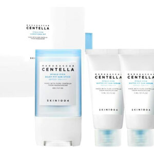 This skin care kit from SKIN 1004 provides hydration and protection for your face. The Madagascar Centella Hyalu-Cica Silky-Fit Sun Stick shields skin from the suns rays with broad spectrum SPF 50+ protection. Its lightweight, non-greasy formula spreads easily and feels comfortable all day. For added sun defense, the Madagascar Centella Hyalu-Cica Water-Fit Sun Serum Mini hydrates skin with hyaluronic acid and centella extract. This mini serum absorbs quickly and leaves skin feeling soft and supple. Together, these products form a one-two punch against sun damage and dehydration. Get silky, glowing skin with the advanced anti-aging benefits of centella in this convenient travel-sized kit. – Hydrating Protection: This kit provides lightweight, soothing hydration and SPF 50+ sun protection for your daily skincare routine. – Centella Skin Care: Formulated with Madagascar Centella Asiatica, an effective soothing ingredient known to reduce redness and irritation. – Silky Sun Stick: A smooth, non-greasy sun stick glides on easily for full body coverage in just a few swipes. – Water-Gel Serum: A hydrating SPF 50+ serum absorbs quickly for a refreshed, dewy complexion under makeup or on its own. – Travel-Sized Kit: Includes one full-size sun stick and two mini water-gel serums, making it perfect for on-the-go sun protection.