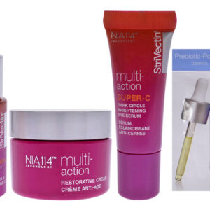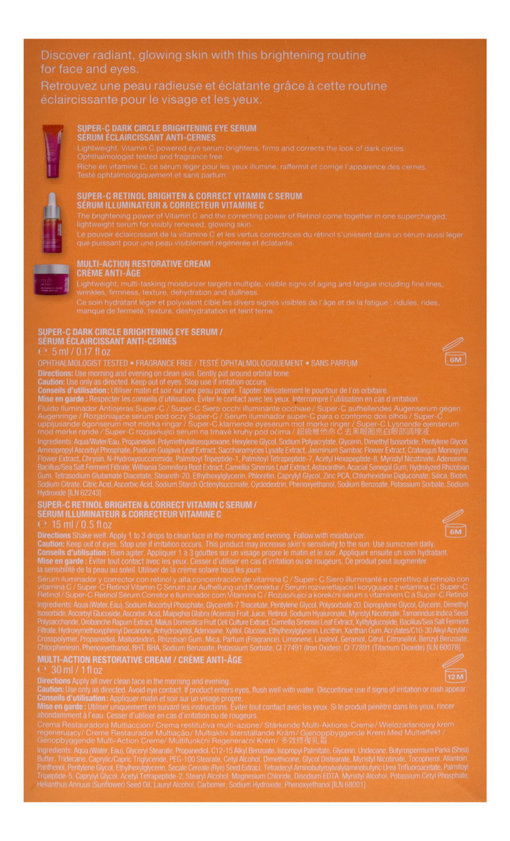 A fórmula para cuidados com a pele múltipla ajuda a apertar e aumentar o brilho ao redor dos olhos para uma aparência mais desperta. Também restaura o brilho e a clareza da pele opaca e cansada. Suavize as linhas finas e a textura irregular.