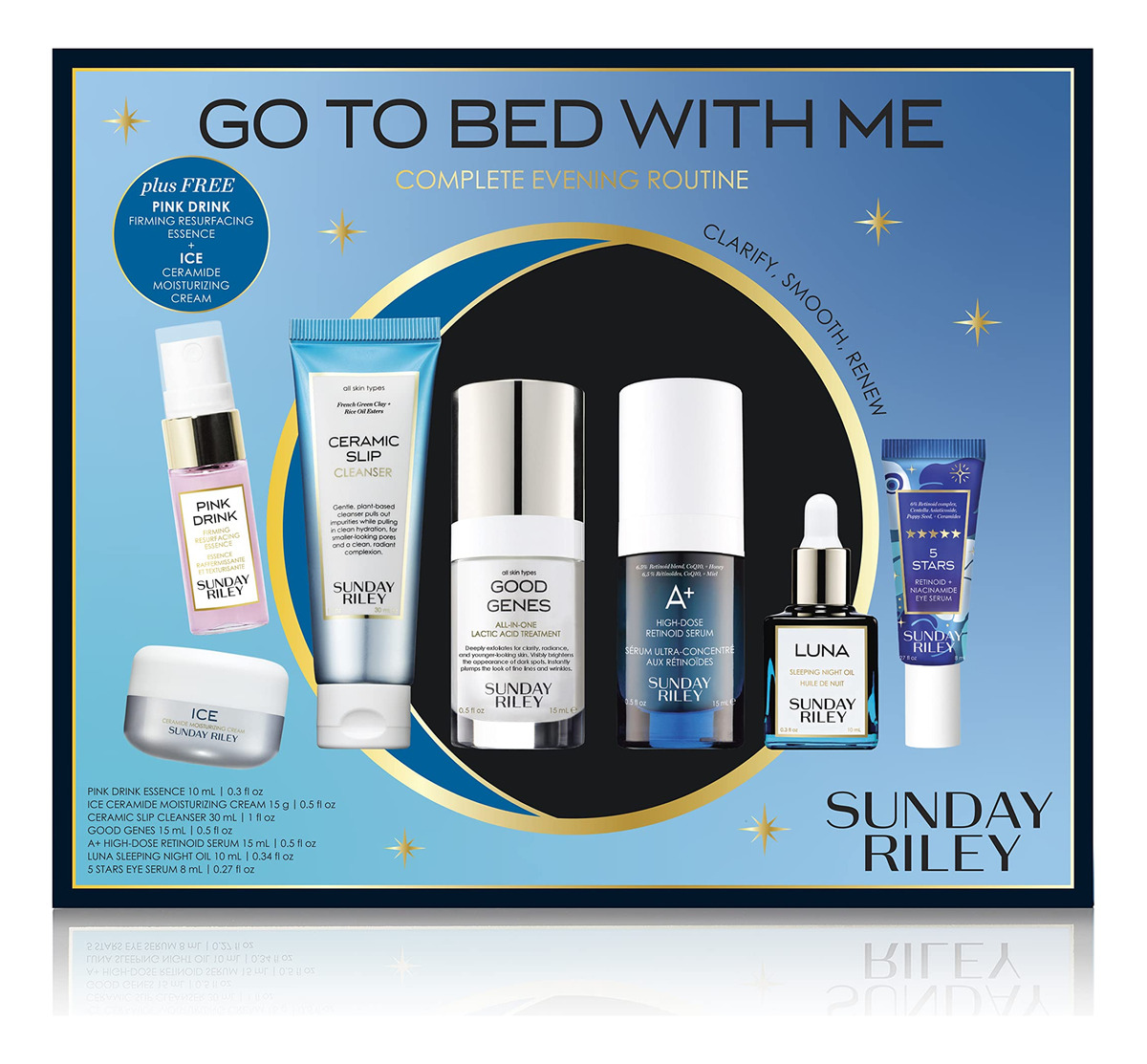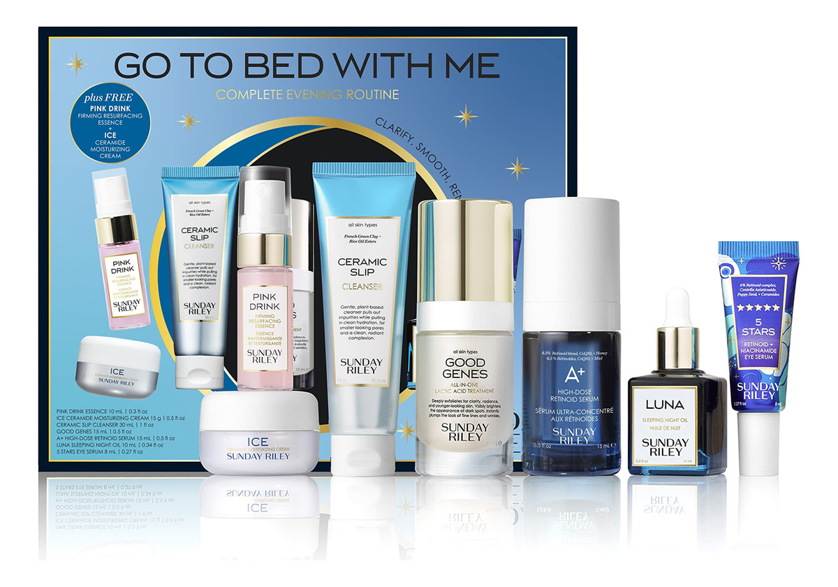 Conjunto completo de cuidados noturnos antienvelhecimento Sunday Riley Go To Bed With Me, 1 ct. — Uma rotina noturna completa com sete itens essenciais para uma pele mais lisa e renovada.