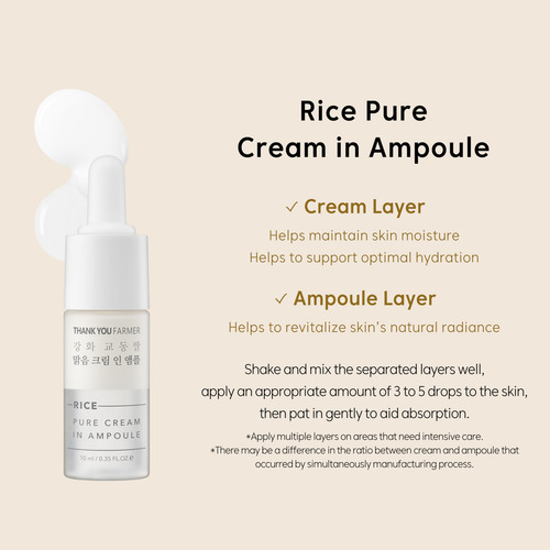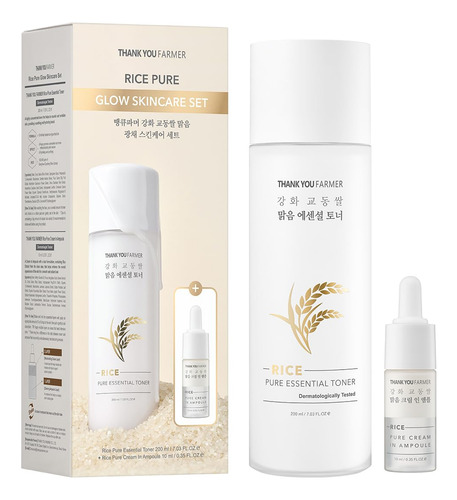 Tônico essencial puro de arroz THANKYOU FARMER 7,03 fl oz (200 ml) + Creme puro de arroz THANKYOU FARMER em ampola 0,35 fl oz (10 ml)