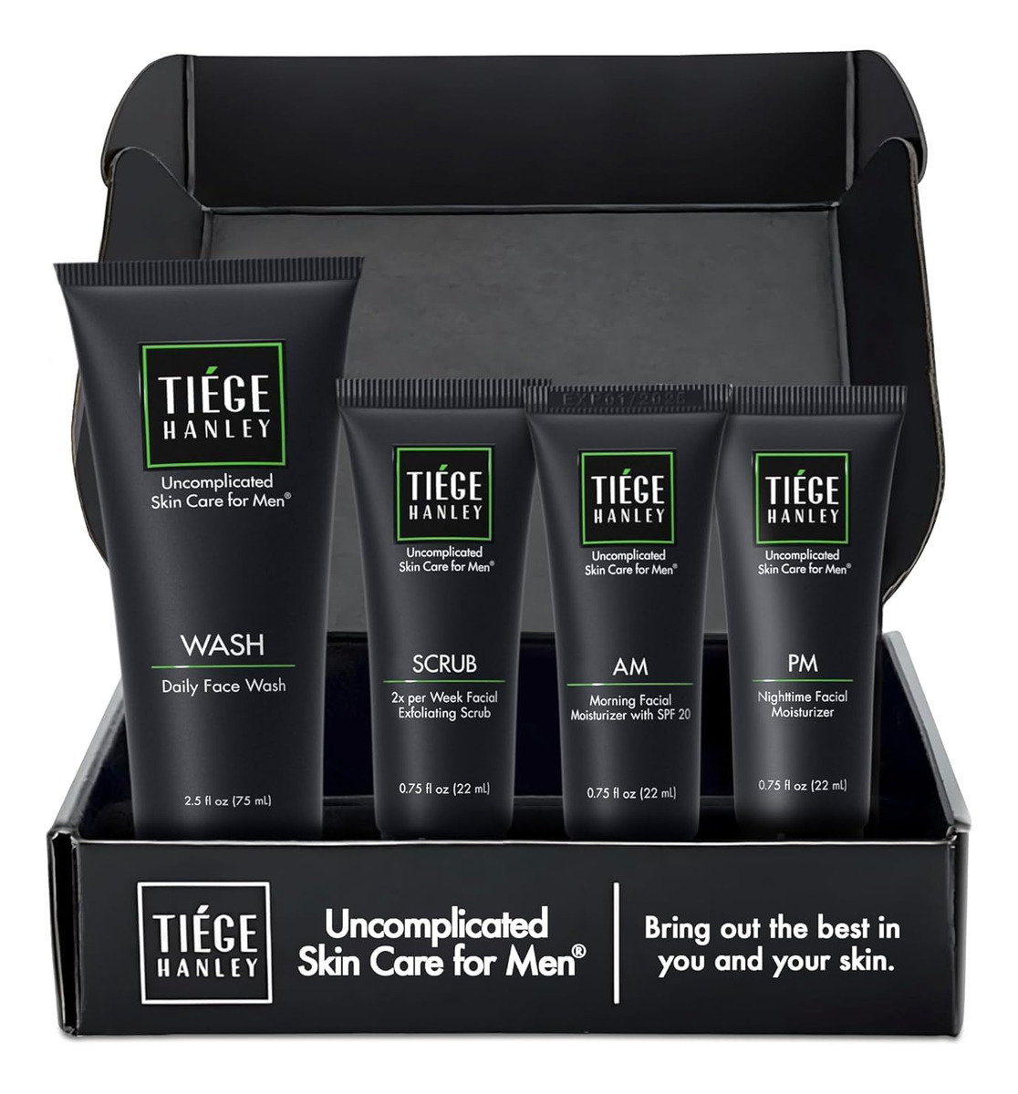 Melhore sua beleza: os produtos da rotina essencial para homens da Tiege Hanley trabalham juntos para suavizar, hidratar e proteger sua pele. Inclui sabonete facial (2,5 onças), esfoliante (0,75 onças), hidratante facial AM com SPF20 (0,75 onças), hidratante PM (0,75 onças) e guia de uso simplificado. Este conjunto de nível 1 fornece um suprimento de 30 dias que é ótimo como pacote inicial para você ou como presente para outra pessoa. – Enhance Your Handsome: os produtos da rotina essencial para homens da Tiege Hanley trabalham juntos para suavizar, hidratar e proteger sua pele. Inclui sabonete facial (2,5 onças), esfoliante (0,75 onças), hidratante facial AM com SPF20 (0,75 onças), hidratante PM (0,75 onças) e guia de uso simplificado. Este conjunto de nível 1 fornece um suprimento de 30 dias que é ótimo como pacote inicial para você ou como presente para outra pessoa. – Daily Face Wash: WASH é um limpador facial de alta qualidade para homens, destinado a ser usado duas vezes ao dia, de manhã e à noite. Ele enxagua o óleo e a sujeira para expor uma pele limpa, saudável e bonita. É seguro para peles sensíveis e ajuda a manter a produção de óleo sob controle. – Esfoliante facial: o SCRUB não só ajuda a manter a superfície da pele limpa, mas promove o crescimento de novas células da pele e também ajuda a uniformizar o tom da pele. Duas vezes por semana, aplique o ESFOLIANTE na pele úmida por cerca de 10 segundos, enxágue e seque. – Hidratantes faciais de manhã e hora de dormir: AM é um hidratante facial matinal com FPS 20. Ele hidrata a pele, regula a produção de óleo e fornece a proteção solar necessária. PM é um hidratante facial noturno que hidrata a pele e ajuda a aumentar a produção de colágeno para melhorar a elasticidade da pele e diminuir as rugas enquanto você dorme. Após a lavagem, aplique o hidratante no rosto por cerca de 10 segundos. – Uma rotina simplificada de cuidados com a pele: nossa filosofia na Tiege Hanley é desenvolver rotinas que incluam o menor número de produtos e levem o menor tempo possível. Simples Rápido. Bem sucedido. Você não deve ter dúvidas sobre o que está usando e o que está fazendo.