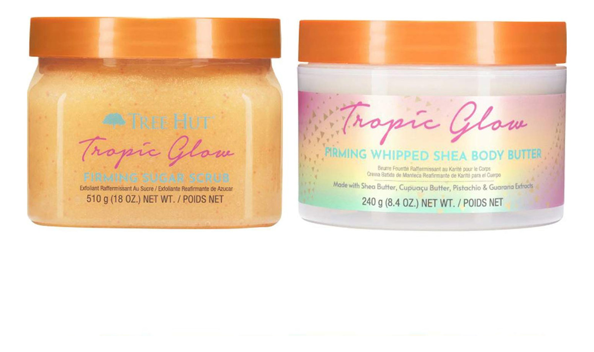 Conjunto de esfoliantes e loções de açúcar de karité TREE HUT com manteiga de cupuaçu e guaraná – Deixa a pele macia e suave – A MANTEIGA DE KARITÉ 100% PURA é conhecida por hidratar, nutrir e suavizar profundamente a pele seca, ajudando a promover a elasticidade. – A MANTEIGA DE CUPUAÇU ajuda a prevenir a pele seca e restaurar a sensação de elasticidade mais firme. – O EXTRATO DE GUARANÁ ajuda a melhorar a aparência de uma pele mais lisa. – O AÇÚCAR é um esfoliante natural que efetivamente limpa a pele morta enquanto ajuda a aumentar a circulação na superfície da pele e os ÓLEOS NATURAIS condicionam a pele para ajudar a prevenir o ressecamento e equilibra a hidratação para um brilho refinado e saudável, e o ÓLEO DE SEMENTE DE PISTACHE ajuda a reter a umidade e criar uma barreira para proteger a pele seca. – Inclui manteiga corporal batida firmadora Tropic Glow 8,4 onças e esfoliante firmador de açúcar Tropic Glow 18 onças. – Tipo de contagem de unidades: onça