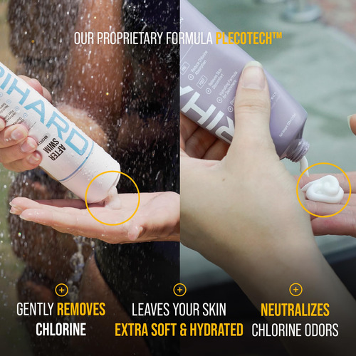 Apresentamos o pacote TriHard Swimmers' Ultimate Care, seu regime abrangente de cuidados com a pele feito sob medida para as necessidades exclusivas dos nadadores. Esta dupla inclui nosso sabonete líquido pós-natação e loção corporal pré e pós-natação, ambos infundidos com nossa inovadora tecnologia de limpeza PLECOTECH e ricos em óleos e minerais naturais para apoiar sua pele antes e depois da natação. Sabonete líquido pós-natação: mergulhe no rejuvenescimento pós-natação com nosso sabonete líquido que remove com eficácia os produtos químicos da piscina, o odor de cloro e os resíduos de água salgada. Com PLECOTECH, algas vermelhas, minerais do Mar Morto e óleos hidratantes, ele não apenas limpa, mas também acalma e rejuvenesce a pele irritada e seca, deixando-a revigorada e revitalizada. Loção corporal pré e pós-natação: nossa loção versátil oferece benefícios duplos. Aplique antes de nadar para proteger sua pele de produtos químicos agressivos e minimizar sua absorção. Após a natação, sua fórmula hidratante, enriquecida com óleo de coco, manteiga de karité, ácido hialurônico e glicerina, atua restaurando a umidade, acalmando o ressecamento e aliviando a coceira, garantindo que a pele permaneça macia, hidratada e saudável. O pacote TriHard Swimmers' Ultimate Care é o resultado do nosso compromisso em fornecer aos nadadores soluções de cuidados com a pele de alta qualidade e ecológicas. – [Solução abrangente para cuidados com a pele]: nosso pacote Ultimate Care inclui o sabonete líquido pós-natação e a loção corporal pré e pós-natação, projetados para proteger, limpar e rejuvenescer sua pele durante as atividades de natação. Presente para nadadores. – [Limpeza avançada com PLECOTECH]: O sabonete líquido é desenvolvido pela PLECOTECH, nossa tecnologia exclusiva que incorpora algas vermelhas e minerais do Mar Morto, como cloreto de magnésio e sal marinho, removendo com eficácia o cloro e a água salgada e evitando irritações na pele. – [Proteção antes da natação]: aplique nossa loção corporal antes e depois de mergulhar para formar uma barreira protetora contra produtos químicos da piscina e do oceano, minimizando sua absorção e potencial danos na pele. – [Hidratação e recuperação pós-natação]: Rico em coco e amêndoa de origem natural Óleos, manteiga de karité, ácido hialurônico e glicerina, nossa loção hidrata intensamente e acalma a pele seca e com coceira após nadar, restaurando seu brilho saudável. – [Fórmula ecológica e para pele sensível]: Ambos os produtos são feitos sem produtos químicos agressivos, adequados para peles sensíveis e feitos com práticas ecológicas. Nossos cuidados com a pele são tão gentis com sua pele quanto com o planeta.