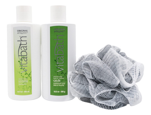 Conjunto de cuidados diários para a pele Vitabath Original Spring Green Everyday Gel de banho, loção revigorante e pufe esfoliante corporal — Limpador de espuma intoxicante e hidratação da pele seca para mulheres e homens — BRING ON THE SPA BLISS — Ideal diariamente para uma pele macia, suave e radiante com o sabonete Original Spring Green Essentials, além de kit hidratante de banho e cuidados corporais; três itens essenciais para uma pele revitalizada, hidratante creme rico, gelee espumante e uma esponja de malha. – LIMPAR NUNCA FOI TÃO INCRÍVEL – Fragrância inebriantemente fresca com infusão de pinho, jacarandá e perfeita quantidade de patchouli; extratos botânicos, óleos, vitamina A, C, E e biotina deixam a pele com um cheiro divino, saciado, macio e saudável. – ADEUS À SECURA – Respire o aroma sedutor enquanto toma um delicioso creme hidratante não oleoso; derrete na pele, oferecendo nutrição com vitaminas e aminoácidos de colágeno que melhoram a pele, deixando a pele hidratada e macia. – ADORO O QUE VOCÊ COLOCA NA PELE – Sinta-se fresco e completamente limpo com misturas hidratantes infundidas com vegetais que adoram a pele e sem glúten, parabenos e ftalatos; certificado pela PETA , nunca testado em animais. – MIMANDO A PELE HÁ 60 ANOS – Desde 1957, desenvolvemos produtos essenciais incríveis para o banho e o corpo; comprometidos com a segurança, a qualidade e a inovação dos produtos, nos esforçamos para superar suas expectativas.