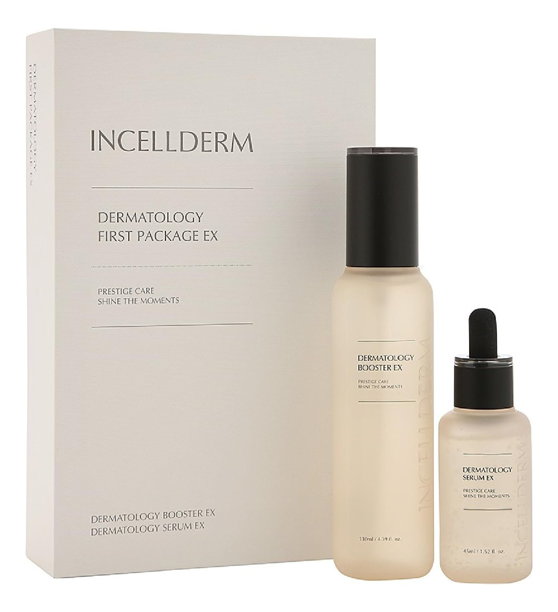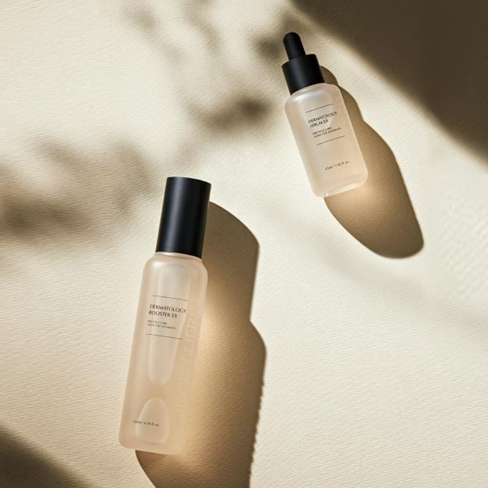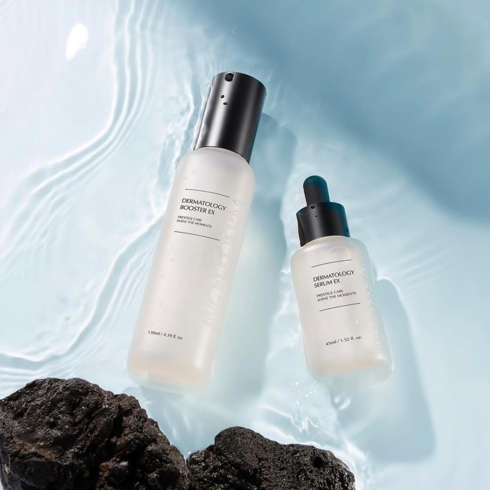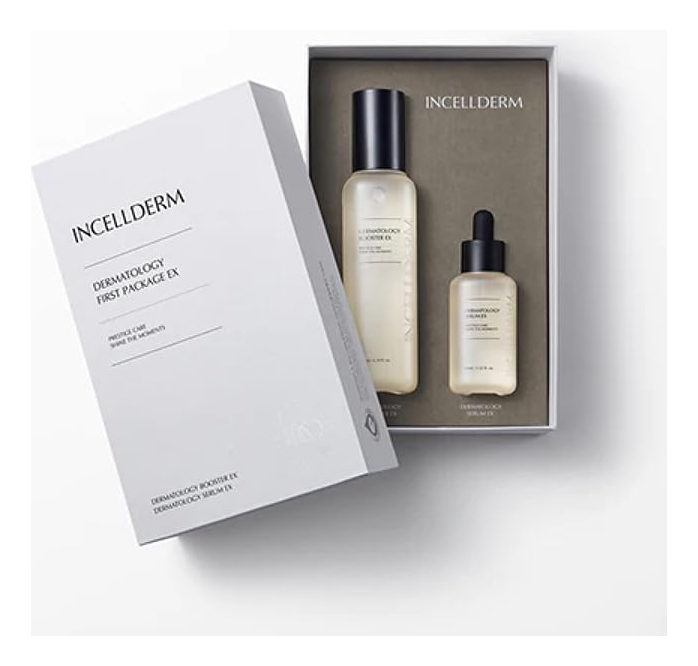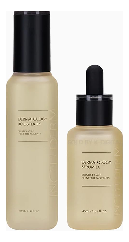 [Descrição do produto] Dupla de reforço e sérum que protege a pele do ambiente externo e oferece nutrição profunda para uma pele vibrante e brilhante./ Booster EX 130 ml/4,39 fl.oz. Serum EX 45 ml/1,52 fl.oz. – [Por que é especial] 1. Cuidado de dupla sinergia que restaura a força da pele. A energia da dupla sinergia, que cuida da sua pele de forma saudável desde o básico. 2. Cuidados com a elasticidade da pele desde o básico. Vários nutrientes do complexo derivado de plantas cuidam desde o básico para uma pele firme. 3. Hidratação rica e textura nutritiva. A textura rica em umidade melhora o teor de umidade da pele e fornece uma textura suave à pele. – [A energia de lava de Jeju da INCELLDERM] Dos leitos rochosos vulcânicos da Ilha de Jeju, essa água do mar de lava intocada foi mantida por 400 mil anos, preservando sua notável energia do oceano. Sob a temperatura ideal de 80 graus Celsius, a lava da água do mar extrai lenta e suavemente os fluidos essenciais das folhas de Byungpool. É assim que o incrível fluido energético Byungpool da InCellDerm é criado, proporcionando uma pele mais jovem e radiante. – [Double Synergy CareAwakening Skin] Multireforço hidratante/Resiliência cutânea construída a partir da base/Pele brilhante com energia hidratante/ Multissoro nutritivo/Mantendo a pele saudável de estressores externos/Textura úmida profundamente hidratante oferece uma pele macia e sedosa. – [Benefícios] Melhore o condicionamento da pele /Hidratação/Radiância/Melhoria das rugas. – [Como usar] Etapa 1. Feche os olhos e borrife o Dermatology Booster EX a cerca de 15 cm de distância do rosto. Etapa 2. Aplique o Dermatology Serum EX suavemente ao longo da textura da pele e absorva-a completamente.