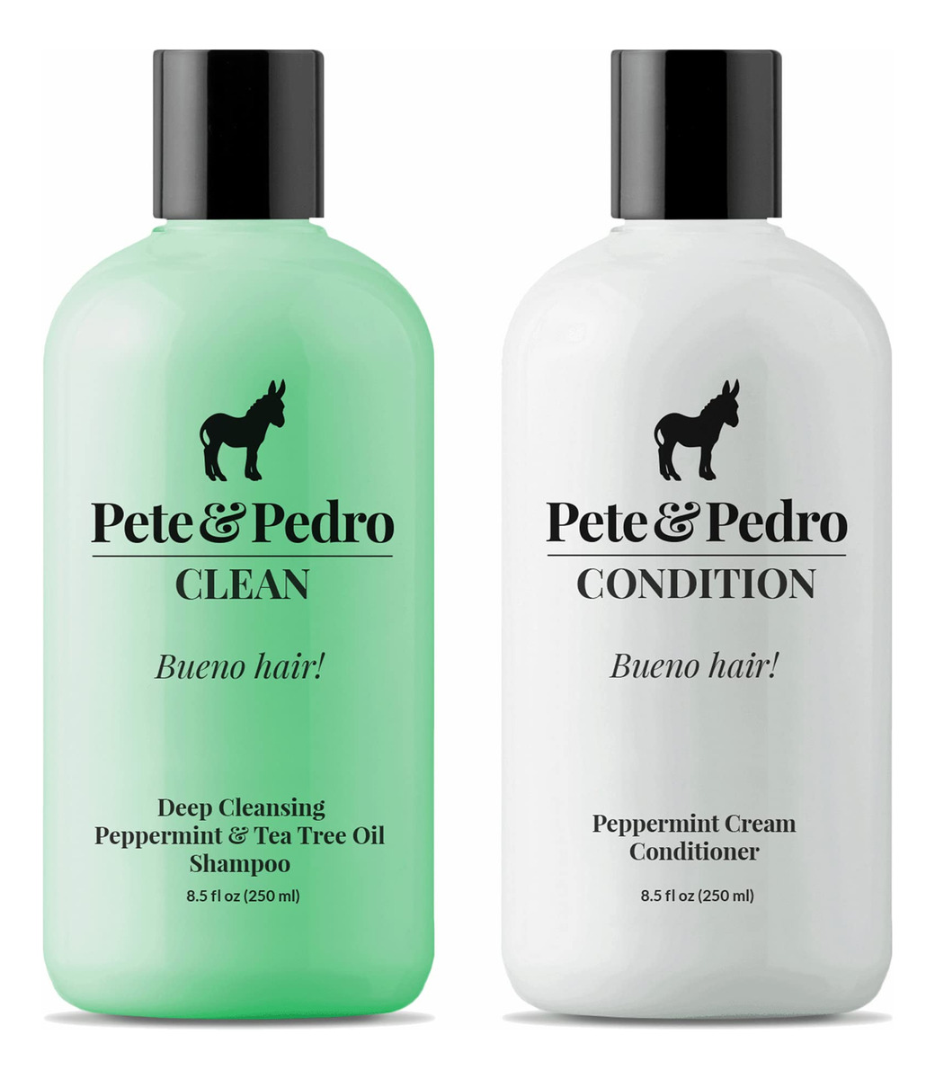 Pete & Pedro Clean & Condition Combo é nosso pacote de produtos essenciais para o cabelo com shampoo de melaleuca de 8 onças e condicionador de hortelã de 8 onças. Cabelos bonitos precisam estar no seu melhor (sim, você precisa usar um condicionador), então nem pense em pegar apenas um e encerrar o dia, senhores. Clean é nosso shampoo exclusivo de limpeza profunda que contém uma grande quantidade de óleo revigorante de hortelã e melaleuca para proporcionar uma grande limpeza por meio de uma espuma rica. O óleo de melaleuca é conhecido por ajudar a remover a oleosidade acumulada e a pele morta e trabalha duro para livrar o couro cabeludo da caspa e da pele escamosa. Condition é o nosso melhor condicionador cremoso nutritivo que inclui um toque de óleo de hortelã. Usar o Condition é essencial, pois restaura os nutrientes e os óleos naturais do cabelo que a moagem diária e o shampoo eliminam. O condicionador contém ingredientes que restauram o equilíbrio do pH do cabelo e, principalmente, trazem energia e vida aos cabelos secos e danificados. O óleo de hortelã dá ao couro cabeludo uma sensação refrescante, calmante e relaxante, ao mesmo tempo em que adiciona brilho e maleabilidade ao cabelo, nunca fazendo com que pareça pesado. Combo @ a Glance Size — Disponível em tamanhos de viagem de 8 onças (32 onças e 2 onças). Perfume — Limpo — hortelã forte. Condição: hortelã leve. Ingredientes principais: óleo de melaleuca, óleo de hortelã, pantenol. Sem parabenos — Conjunto exclusivo de cuidados com o cabelo: nosso kit exclusivo de cuidados com o cabelo inclui xampu limpo e condicionador de hortelã. Clean é o nosso shampoo de hortelã revigorante e de limpeza profunda exclusivo para proporcionar uma grande limpeza. Combinado com o Condition, o melhor condicionador nutritivo e cremoso, este conjunto é o kit de cabelo perfeito para um cabelo lindo! – Óleo de hortelã e melaleuca: Clean é repleto de óleo de melaleuca para remover o acúmulo de óleo e ajudar a livrar o couro cabeludo da caspa leve e da descamação da pele. O condicionador é infundido com óleo de hortelã e pantenol para hidratar, nutrir e proteger naturalmente o cabelo. – Ótimo para todos os tipos de cabelo: o conjunto Clean & Condition é ideal para todos os tipos de cabelo e é ótimo para uso diário. O conjunto também é ótimo para cabelos oleosos, oleosos ou secos. Também funciona muito bem para mulheres! – Ingredientes principais e sem parabenos: o Clean é infundido com óleo de melaleuca e óleo de hortelã para proporcionar uma sensação de limpeza incomparável ao remover o óleo e a sujeira. A condição contém pantenol, óleo de hortelã e proteína de arroz para ajudar a manter o cabelo hidratado e saudável. Ambos sem parabenos. – Apresentado no Shark: nosso conjunto de cuidados com o cabelo mais popular é o favorito dos fãs. Iniciado em 2013, Pete & Pedro apareceu no Shark Tank e inclui uma linha premium completa de produtos masculinos de higiene, cabelo, fragrâncias, barba e corpo.