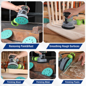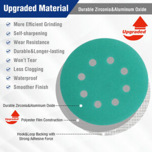 Discos de lixamento de filme WORKPRO de 150 peças e 5 polegadas, verdes – conjunto de lixa multigrão de 150 peças: nosso conjunto de discos de lixar fornece a lixa multigrão de que você precisa. Você receberá um total de 150 lixadeiras orbitais de 10 graus diferentes, incluindo 60 grãos, 80 grãos, 100 grãos, 120 grãos, 150 grãos, 180 grãos, 240 grãos, 320 grãos, 400 grãos e 600 grãos. Quanto maior o número, mais fina é a areia. – Sem rasgos e duráveis: nossos discos são construídos com um material de suporte de filme de poliéster pesado entre o grão abrasivo de óxido de alumínio e o suporte de gancho e laço. Esse material premium cria um disco mais forte, com uma dissipação de calor mais eficaz, tornando-os quase impossíveis de rasgar. Chega de bordas desgastadas ou rasgadas ao lixar os cantos. – Mais afiados e resistentes ao desgaste: nossos discos de lixar são feitos de abrasivo aprimorado de zircônia e óxido de alumínio, o que torna a lixa mais afiada, duradoura e menos obstruída, aumentando a vida útil da lixa. – Suporte Hook&Loop: a parte traseira da soneca agiliza a remoção e substituição de areia. 8 furos são projetados para uma extração eficiente de poeira. – Amplas aplicações – Sua nova marca de discos de lixar é ideal para lixar e finalizar metais e não metálicos, madeira, borracha, couro, plástico, pedra, vidro, e outros materiais.