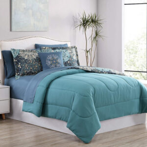 Modern Threads – Granada Collection Comforter Set – Reversible Microfiber – Elegant Printed Bed Set – Includes Comforter, Sheets, Shams, & Pillow – Luxurious Bedding – Timeless Bedding In Tranquil Blues & Grays: Your new plush comforter set looks and feels amazing. An elegant medallion pattern on a reversible comforter and lovely decorative pillow tops your cozy sheet set, including sleek shams, pillow cases, a flat sheet, and a deep fitted sheet. Quality craftsmanship and a stunning design sets this 100% microfiber complete bedding set apart from the restrefresh your own bed or the guest room beautifully. – Soft Modern Fabric Like The Finest Luxury Hotel Room: Why wait for a special occasion or opulent vacation to experience exquisitely soft bedding? Indulge yourself every night with the silky soft Granada Collection, crafted carefully using luxurious 100% microfiber polyester. Cozy on your skin and easy to maintain with gentle machine washing, count on years of restful sleep with a comforter set thats both gorgeous and spa-level comfy. – Sophistication + Flair Fits In Anywhere: Ideal for every interior design and through every season, your lightweight sheets and comforter blend in perfectly in any setting. Tasteful shades of blues and neutrals in an appealing mandala design mean this set never goes out of style and looks oh-so-charming whether your bedroom has a farmhouse, modern, boho, or traditional look. Its destined to become an all-time favorite bedroom enhancement. – Slide Into A Well-Tailored Bed For Soothing Sleep: Weed out ill-fitting bedding from your closets and stock up on linens that fit your bed like they were custom-made. Our deep fitted sheets perfectly accommodate todays thicker mattressesstaying put securely. Each set comes with a quaint 18 x 18 deco pillow. Our queen size bed set includes a 86 x 86 comforter, a 102 x 90 flat sheet, 60 x 80 x 14 fitted sheet, two 20 x 40 pillowcases, and two 20 x 36 shams. – A Family Operated Brand With Over 40 Years Experience: Our family-operated brand has created elegant home textiles for more than 40 years, with every item hand-designed by talented designers in our California studio. At the intersection of luxury and functionality, we source only high-quality materials to enhance your home with dcor you can be proud of. Make Modern Threads your go-to interior design brand and completely upgrade your space into the elegant oasis of your dreams.