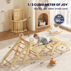 conjunto de escalada Pikler – N+1 opções de jogo, Fun ClimbNew Rope ladder adiciona variedade à diversão de escalada! O conjunto de escalada BlueWood Pikler oferece mais de 8 opções de combinação para novas aventuras todos os dias! Desenvolve a coordenação olho-mão, o equilíbrio e a consciência espacial enquanto estimula a imaginação – Big Fun in Small Spaces, Baby Exclusive Kingdom: design dobrável para fácil armazenamento. Nossos brinquedos de escalada para crianças pequenas ocupam menos de 1/3 de metro cúbico! Combine e crie livremente um parque infantil personalizado adaptado ao seu espaço, repleto de alegria infinita — Cores vibrantes, inspiradas na imaginação: o novo conjunto de triângulos Pikler de 2024 foi projetado com combinações de cores vivas e confortáveis que estimulam o desenvolvimento visual do bebê e cultivam a percepção das cores! Deixe-os prosperar em um mundo de cores vibrantes – Seguro para o crescimento das crianças: o conjunto de escalada BlueWood é de madeira de faia, suportando até 160 libras, adequado para todas as idades. A alça exclusiva em forma de B oferece suporte ideal no ponto mais alto, garantindo segurança em cada etapa de seu desenvolvimento – All-Round Development, Joys Climb High: Climbing and explore promovem o crescimento físico e intelectual. Criamos um ambiente seguro, saudável e alegre. Nosso brinquedo de escalada infantil apoia seu bebê desde os primeiros passos até a escalada livre – Precisa de ajuda? A BlueWood está comprometida em fornecer excelente qualidade de produto e extraordinária experiência de serviço. Nós fornecemos um serviço pós-venda 7* 24h e garantimos uma resposta rápida dentro de 24 horas. Entre em contato conosco a qualquer momento