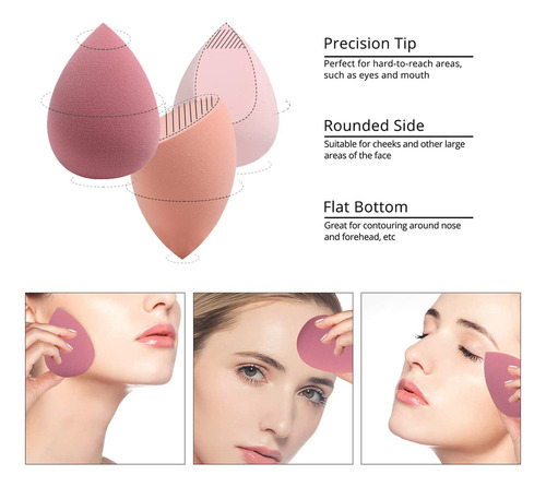 Conjunto de liquidificador de esponjas de maquiagem de 4 peças: aplicador de mistura Professional Beauty Foundation – Suprimentos profissionais para maquiadores. CARACTERÍSTICAS DO PRODUTO: 1. Resíduos cosméticos evitados, como creme BB, corretivo, base, isolamento, pó, blush, etc. Podem ser usados úmidos ou secos e ambos se adaptam perfeitamente à sua mão. Existem muitas formas que se ajustam a todas as partes do seu rosto. Por exemplo: parte superior pontiaguda para fácil aplicação ao redor dos olhos, lábios e nariz. Parte inferior para bochechas, testa e outras partes. 2. Feito de espuma sem látex. Material hidrofílico, com água de fácil e rápida absorção: sensação muito macia, poros refinados, boa elasticidade. Uso úmido e seco. Uso: 1. Quando molhadas, essas esponjas de mistura aumentam seu tamanho. Molhe para a aplicação de produtos leitosos ou cremosos, base, creme BB, loção, corretivo. 2. Quando os cosméticos à base de pó seco podem ser usados diretamente sem a necessidade de adicionar água para umedecê-los. DICAS GENTIS: 1. Não torça o produto ao limpá-lo. Aperte suavemente a água com a mão para evitar que o prego arranhe a esponja.. Limpe a esponja com água morna após cada uso. Aplique uma pequena quantidade de xampu suave e trabalhe até obter uma espuma leve e enxágue bem. Use o orifício redondo na caixa ou suporte de esponja como suporte, seque naturalmente em um local ventilado. 2. Por favor, troque sua esponja por cerca de 30 dias para ficar mais saudável. 3. Mantenha fora do alcance da criança. Especificações e pacotes: 1. 3 formas diferentes de esponjas de maquiagem (4 cores) 2. 1 caixa de armazenamento transparente que pode ajudar a secar ao ar livre 3. 1 porta-esponjas – Conjunto de esponjas de maquiagem premium: feito de material sem látex, sensação supermacia e boa elasticidade. Fácil de guardar, transportar e transportar, seca e à prova de poeira, 4 peças de esponjas, 1 caixa de ovos e 1 suporte – Multiuso: conjunto de liquidificador de esponja de beleza para todos os tipos de cosméticos, 3 formas diferentes, 4 cores, pode caber em todas as áreas do rosto, como asa do nariz e pele ao redor dos olhos. Eles são perfeitos para maquiagem facial – Uso duplo seco e úmido: 1) Uso úmido: a esponja de mistura ficará maior quando molhada, será melhor maquiagem. Adequado para base, creme BB, corretivo, etc. 2) Uso a seco: aplique produtos em pó diretamente, como pó solto, etc. – Evitado desperdício de cosméticos. Este liquidificador de esponjas de maquiagem com poros minúsculos uniformes não absorve muita base e oferece uma aplicação de maquiagem perfeita – Reutilizável e durável: fácil de limpar e manter. Recomendamos lavá-lo após cada uso para o próximo uso e colocá-lo em um local ventilado para secar ao ar livre