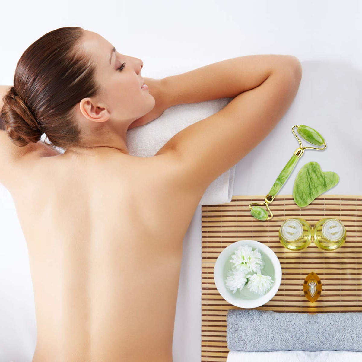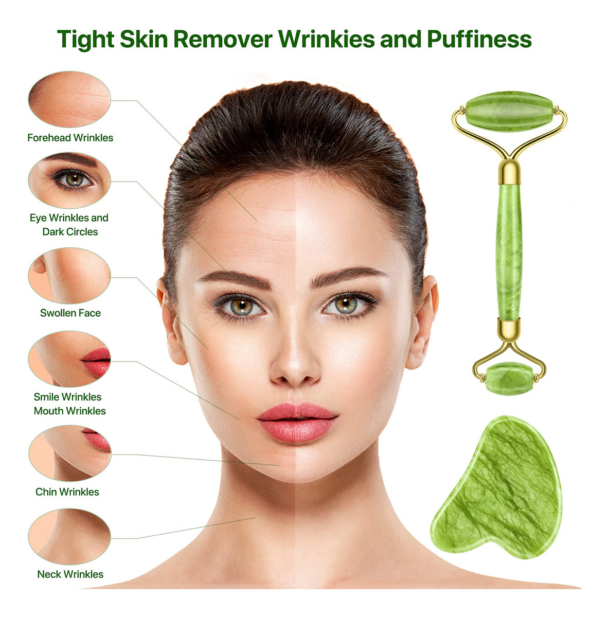 Conjunto De Ferramentas Faciais Eyglajdd Jade Roller E Gua S