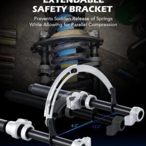 – Suporte extensível: este compressor de mola de suporte vem com um suporte ajustável que garante compressão paralela estável, bem como proteção contra liberação acidental da mola sob alta tensão