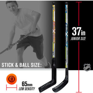 Franklin Sports Street Hockey Set – NHL – Goalie and Player Sticks and Ball – STREET HOCKEY SET: This youth street hockey set comes with (1) youth goalie stick, (1) junior hockey stick, and (1) official size street hockey ball so you have everything you need to get the game started – DURABLE STICKS: The sticks are built with flexible ABS material for premium durability that stands up game after game – OFFICIAL STREET HOCKEY BALL: This set comes with an official size street hockey ball specially designed for low bounces to keep the ball in play – PLAYER STICK: The 34 player stick is the perfect size for youth players who want to sharpen their street hockey skills. – GOALIE STICK: Step between the pipes with the 34 junior goalie stick and try to put up a shut out against your friends.