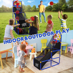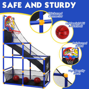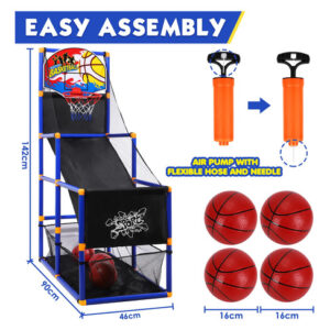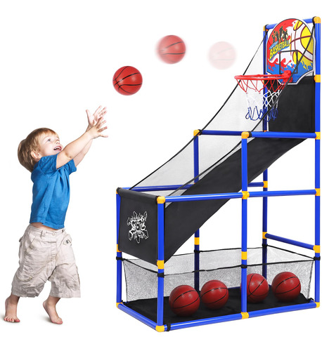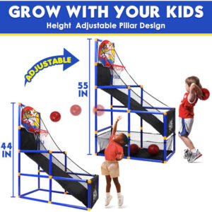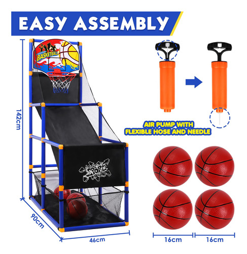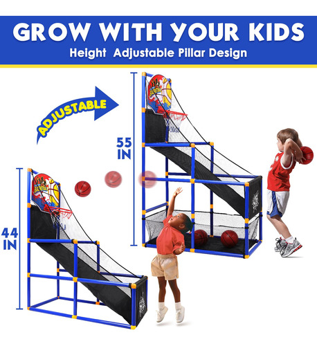 Com o objetivo de estimular o potencial ilimitado das crianças, estamos comprometidos em criar um maravilhoso reino de brinquedos e um ambiente colorido de crescimento para crianças. Incentivamos as crianças a sentir, aprender e explorar o mundo, a fim de descobrir seus pontos positivos e inspirar seus talentos. Além disso, cultivam seus próprios interesses e sonhos na vida e, finalmente, se destacam no processo de crescimento! O conjunto de fliperama AOKESI possui um mecanismo de altura ajustável, permitindo que você ajuste facilmente o suporte em duas alturas distintas. Essa adaptabilidade é perfeita para acomodar crianças de várias idades. Se seu filho está procurando aperfeiçoar suas habilidades de tiro ou desfrutar de uma partida competitiva com amigos, nosso conjunto de jogos de arcade é a melhor escolha. O jogo de basquete Toy Arcade inclui: 1 bomba de ar, 4 bolas de basquete infláveis, conjunto de arcade de basquete – conjunto de jogos Basketball Carnival. Nosso conjunto de cesta de basquete foi projetado com um suporte resistente e uma placa de basquete espessa para garantir a durabilidade do produto. As dimensões do suporte de basquete são de 36" L x 18,5" L x 56" H. – O basquete de arco ajustável em altura pode ser ajustado de 44 a 55 polegadas para jogos de basquete domésticos e externos. Ideal para meninos e meninas de 3 a 6 a 8, 9 a 10 e 11 a 12 anos e os ajuda a se manterem ativos, aprimorando a coordenação olho-mão. – Fácil de instalar. Todos os acessórios (4 bolas de basquete de borracha, uma bomba, rede de alta qualidade) estão incluídos. Você pode instalá-lo rapidamente em alguns minutos e começar a experimentar jogos de basquete. – Desfrute de jogos de basquete internos e externos. O conjunto de jogos Aokesi Basketball promove a atividade física e proporciona diversão infinita para crianças e famílias. Seja um dia chuvoso em ambientes fechados ou sol no quintal, este brinquedo é o conjunto de jogo perfeito para qualquer família. Além disso, você pode brincar com seus filhos no porão, no quarto das crianças, na sala de jogos ou na garagem. – O melhor presente para crianças. Brinquedos duráveis, seguros e divertidos que permitem que as crianças interajam com a família e amigos. Deve ser um presente perfeito para aniversários, Natal, Ação de Graças e Ano Novo.