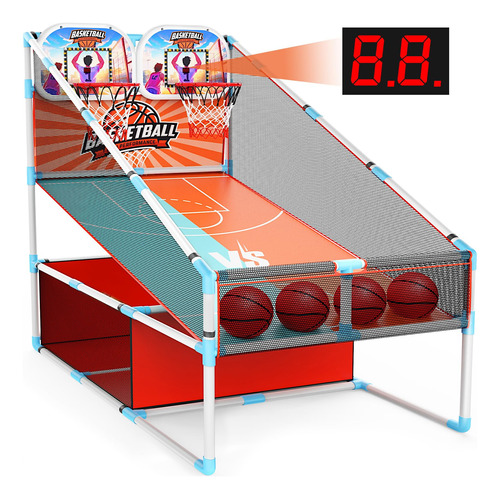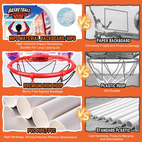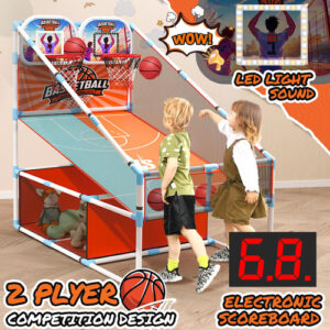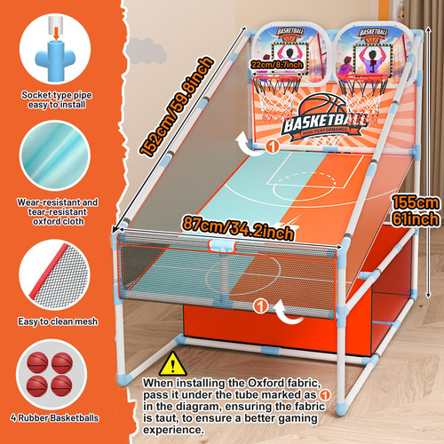 Design de tiro para duas pessoas: mergulhe em emocionantes tiroteios para dois jogadores com a cesta de basquete de arcade coberta da Iyoyo, perfeita para enriquecer o vínculo familiar ou estimular o espírito competitivo entre irmãos. Apresenta um placar eletrônico dinâmico para atualizações de pontuação perfeitas e em tempo real. – Jogo de basquete Dual Arcade Os jogos de basquete infantil SetiYoyo apresentam 2 arcos e 2 contadores eletrônicos, perfeitos para competições multijogador. Ele oferece maior competitividade e interatividade em comparação com as versões para um jogador. Adequado para uso em ambientes internos, externos, no porão, quarto, sala de estar, garagem ou quintal. Ideal para jogos de basquete com crianças a qualquer hora, em qualquer lugar. Perfeito para atividades internas, festas infantis ao ar livre, jogos na igreja, exercícios internos ou externos e brinquedos para meninos e meninas de 3 anos ou mais. – Placar eletrônico com som de torcida Nossa casa infantil de arcade de basquete possui 2 contadores eletrônicos com sensor infravermelho, exibindo automaticamente pontuações e tocando sons de torcida. Ele cria uma atmosfera emocionante e competitiva, oferecendo uma verdadeira experiência de jogo de arcade para um tempo de jogo de qualidade. Ideal para despertar a paixão de uma criança pelo basquete e promover a interação entre pais e filhos. Brinquedos perfeitos para jogos de basquete para meninos de 3 a 5 6 7 anos. – Luz LED dinâmica O jogo de cesta de basquete tem luz LED que se ilumina a cada aro de sucesso, evocando uma atmosfera envolvente de arcade. Aproveite o recurso de luz hipnotizante que diferencia nossa criação e oferece uma atmosfera de jogo incomparável para você e seus filhos de 3 a 6 a 8 anos meninos e meninas, o conjunto de jogos de basquete arcade para meninos são os surpreendentes jogos de quintal, brinquedos internos ao ar livre para crianças 3-6 4-8 8-10, aproveite o jogo de basquete. – Amplo espaço de armazenamento A área inferior de armazenamento em tecido de malha oferece espaço extra para bolas de basquete e outros brinquedos, ajudando as crianças a desenvolver bons hábitos organizacionais e economizar espaço. Nossa mini cesta de basquete de fliperama possui tubos mais grossos do que outros, maior durabilidade. O design da rede de basquete pode retornar automaticamente a bola de basquete à sua posição original, eliminando a necessidade de correr para pegar a bola. – Fácil montagem Nosso conjunto de jogos de arcade de basquete vem com um manual de montagem detalhado e todo o hardware necessário, facilitando a configuração rápida de qualquer pessoa. Vem com 4 pequenas bolas de basquete de 6 polegadas e uma bomba de ar para garantir que seu jogo de basquete esteja sempre pronto para jogar. A cesta de basquete Iyoyo para crianças de 3 a 12 anos oferece uma emocionante experiência de basquete arcade. Lembrete caloroso: não use martelo para instalação. Se os acessórios estiverem danificados ou ausentes, entre em contato conosco para obter peças de reposição gratuitas. Escolha de presente ideal e benefícios abrangentes. O conjunto interno para jogos de basquete Arcade não apenas melhora as habilidades atléticas e a aptidão física das crianças, mas também melhora a coordenação olho-mão, o trabalho em equipe e o espírito esportivo. É uma opção fantástica de presente para aniversários, feriados, festas, Natal, carnaval ou qualquer ocasião especial, oferecendo infinitas horas de diversão e entretenimento para crianças de 3 a 12 anos e jogos de basquete para crianças de 8 a 12 anos.
