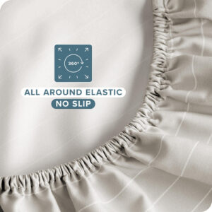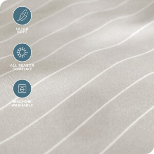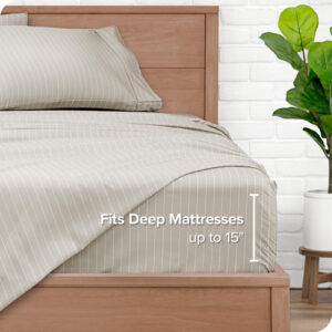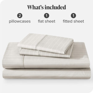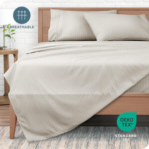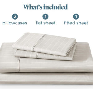 Sheet Set, Microfiber, Printed, California King, Pinstripe, Stone/White, california king sheet sets, cal king sheet set, bed sheets,cooling sheets,sheets,sheet & pillowcase sets,sheet set,cooling bed sheets,bedding sheets & pillowcases,bed sheet,hotel sheets – ULTRA SOFT SHEETS: Our proprietary hydro-brushed fabric is ultra-soft, lightweight, and airy to keep you warm in the winter and cool in the summer. Available in a wide range of colors to compliment any bedroom. – 4-PIECE CALIFORNIA KING SIZE BED SHEET SET: 1 King Flat Sheet (108 x 102), 2 King Pillowcases (20 x 40), 1 California King Fitted Sheet with all-around elastic (not just in the corners) (72 x 84 x 15 Pocket). Extra deep pockets grip and fit mattresses up to 15. – ALL-AROUND ELASTIC: The fitted sheet has elastic all-around to grip and fit the mattress better and to keep it in place all night long. – EXCEPTIONAL QUALITY: The finest quality microfiber yarn is hydro-brushed for an unbelievable soft feel without harmful chemicals and made to last. – THE BARE PROMISE: If you dont love your cal king sheet set for any reason, send it back and well make it right.