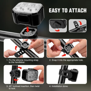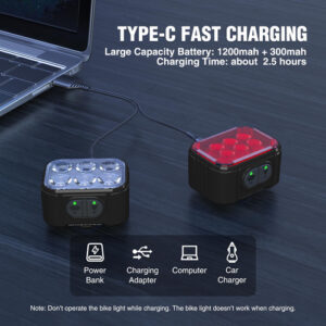 Conjunto de luzes de bicicleta WORKPRO [8+13 modos], conjunto de luzes de bicicleta recarregáveis ultrabrilhante, luzes de bicicleta à prova d'água IP65 para andar à noite, refletores de farol e luz traseira de 1200 mAh, preto – Nova atualização 8+13 modos: o conjunto de luzes de bicicleta WORKPRO adota um design separado de farol alto e baixo com função de memória, a luz frontal tem 4 modos e a luz traseira tem 6 x 7 modos, incluindo alto e médio, modos de flash baixo e múltiplo. Clique duas vezes para piscar em qualquer modo e pressione e segure o botão por mais de dois segundos para desligar diretamente a luz da bicicleta. O recém-lançado modo de letreiro pode ser reproduzido em um loop infinito, facilitando a visualização sem causar deslumbramento. Design de holofote e holofote ultrabrilhante: um holofote superbrilhante fornece 260 pés de comprimento de iluminação, enquanto o holofote aumenta consideravelmente o ângulo de iluminação para melhor visibilidade. Ele mantém você seguro enquanto permite que você ande livremente e alegremente à noite – Carregamento tipo C e bateria de longa duração: bateria frontal de 1200 MAH + bateria de luz traseira de 300 MAH, você pode usar o cabo USB de carregamento rápido de porta dupla incluído para carregar as duas luzes ao mesmo tempo em 2,5 horas, então não precisa mais esperar de 3 a 4 horas! A bateria de grande capacidade garante a longa vida útil das luzes de bicicleta recarregáveis – IP65 à prova d'água: a luz de bicicleta à prova d'água IP65 totalmente atualizada permite que você ande com mau tempo. Divirta-se pedalando mesmo na neblina ou na chuva! É construído com um invólucro de alta qualidade projetado para manuseio e batidas difíceis, com excelente resistência ao impacto e dissipação de calor. Sua luz LED para bicicleta pode suportar uma queda de 10 pés – Fácil de instalar e multifuncional: as luzes da bicicleta podem ser facilmente instaladas manualmente sem ferramentas. As tiras de montagem de silicone podem ser montadas horizontal e verticalmente no guidão de bicicletas, postes de assento e mochilas, reduzindo a vibração mesmo em estradas irregulares. Leve e compacto, fácil de transportar no bolso. Este conjunto de luzes de bicicleta é ideal para andar de bicicleta, caminhar, acampar ou onde a visibilidade e a segurança são uma preocupação
