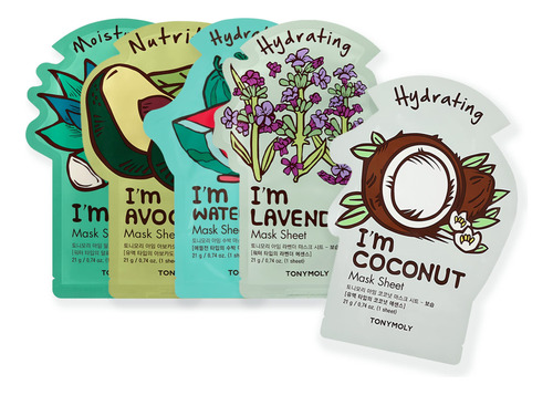Conjunto de máscara TONYMOLY Im Hydration Sheet, máscara facial coreana para cuidados com a pele, cuidados hidratantes e hidratantes, rosto com infusão de vitaminas, suaviza a pele, pacote com 5