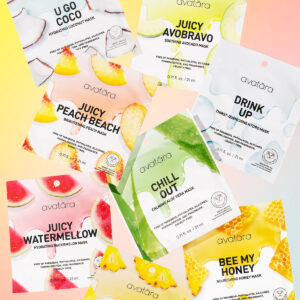 Máscara facial Drink Up: esta máscara hidratante contém ingredientes como ácido hialurônico, suco de folhas de aloe vera, raiz de alcaçuz e glicerina. O ácido hialurônico atrai a umidade da pele para uma aparência rechonchuda e equilibrada, enquanto o Aloe Vera e a raiz de alcaçuz acalmam e iluminam o tom irregular da pele. A glicerina aumenta os níveis de hidratação, deixando a pele úmida e radiante. Máscara facial Chill Out: projetada para acalmar e nutrir a pele estressada, esta máscara contém suco de folha de aloe vera, centella asiática, extrato de calêndula e ginkgo biloba. O Aloe Vera fornece suporte antioxidante, enquanto a Centella Asiatica ajuda a pele a se recuperar dos danos. O extrato de calêndula preenche e minimiza as linhas finas, e o Ginkgo Biloba melhora a hidratação e suaviza a textura. Máscara facial suculenta de melancia: revitalize a pele cansada com esta máscara com extrato de melancia, ácido hialurônico, óleo de semente de girassol e pantenol. O extrato de melancia acalma e restaura a umidade, enquanto o ácido hialurônico mantém a pele hidratada e equilibrada. O óleo de semente de girassol aumenta a barreira da pele e o pantenol melhora a elasticidade para uma tez suculenta e rechonchuda. Máscara facial suculenta Avobravo: nutra a pele seca e estressada com extrato de abacate, ácido hialurônico, óleo de semente de girassol e pantenol. O extrato de abacate acalma a vermelhidão, enquanto o ácido hialurônico mantém a hidratação. O óleo de semente de girassol protege contra o envelhecimento prematuro e o pantenol aumenta a retenção de umidade para uma pele mais lisa e elástica. Máscara facial suculenta de abacaxi: refine a textura e os poros com extrato de abacaxi, ácido hialurônico, betaína e pantenol. O extrato de abacaxi suaviza as irregularidades, enquanto o ácido hialurônico hidrata e dá volume. A betaína suporta a barreira da pele e o pantenol melhora a retenção de umidade para uma tez suave. Máscara facial suculenta de praia de pêssego: melhore o brilho e o tom com extrato de fruta de pêssego, ácido hialurônico, óleo de semente de girassol e pantenol. O extrato de pêssego uniformiza o tom da pele, enquanto o ácido hialurônico fornece hidratação. O óleo de semente de girassol protege contra o envelhecimento e o pantenol aumenta a retenção de umidade para uma pele elástica e lisa. Você C This? Máscara facial: Esta máscara contém niacinamida, um ingrediente calmante que reduz a vermelhidão e minimiza os poros. Uma mistura multi-hialurônica hidrata e equilibra a pele, enquanto um complexo peptídico preenche e fortalece a barreira da pele. A betaína suaviza e suaviza a textura geral para uma tez revigorada.Máscara facial Re-dew: semelhante à “You C This?” máscara, esta fórmula contém niacinamida, mistura multi-hialurônica, complexo peptídico e betaína para acalmar, hidratar, dar volume e suavizar a pele para uma aparência rejuvenescida.Máscara Matcha Boba: infundida com Matcha, ceramidas, combinação de ácido multi-hialurônico e probióticos, esta máscara acalma a vermelhidão e fortalece as defesas da pele. As ceramidas retêm a umidade, enquanto o ácido hialurônico hidrata e dá volume. Os probióticos nutrem a barreira da pele, promovendo uma tez calma. Máscara Rose Boba: ilumine e refresque com extrato de flor de rosa da Provença, extrato de flor de rosa damascena, niacinamida e combinação de ácido multi-hialurônico. Os extratos de rosa iluminam visivelmente, enquanto a niacinamida melhora o tom irregular da pele. O ácido hialurônico hidrata e dá volume para um brilho radiante. – Transformação total da pele – Este conjunto de máscaras faciais é o seu ingresso para a transformação total da pele. De hidratação e restauração intensas à nutrição natural e brilho juvenil, esses lençóis de máscara facial combinam todos esses benefícios em um único conjunto. – Hidratação intensa – Nossas máscaras faciais hidratantes oferecem a melhor solução de hidratação. Cada máscara de lençol foi projetada para saciar a sede da pele de forma eficaz. Experimente a umidade que suaviza a pele cansada e evita a desidratação. – Ingredientes botânicos – Mime-se com máscaras faciais enriquecidas com o que há de melhor na natureza, como extrato de abacaxi e abacate. Essas maravilhas botânicas infundem sua pele com nutrientes essenciais, esclarecem o acúmulo, acalmam a vermelhidão e muito mais. – Beleza limpa – Nosso conjunto de máscaras faciais não contém parabenos, ftalatos, silicones ou formaldeído. Além disso, este conjunto de máscaras faciais é livre de fragrâncias e crueldade, para que você possa cuidar de sua pele com tranquilidade. – Luxo natural – Acreditamos em cuidar de sua pele da maneira mais suave possível. É por isso que cada máscara facial em folha é feita de fibra Tencel pura, um material derivado da madeira natural, que é excepcionalmente macio e suavizante para a pele, proporcionando uma experiência verdadeiramente rejuvenescedora.