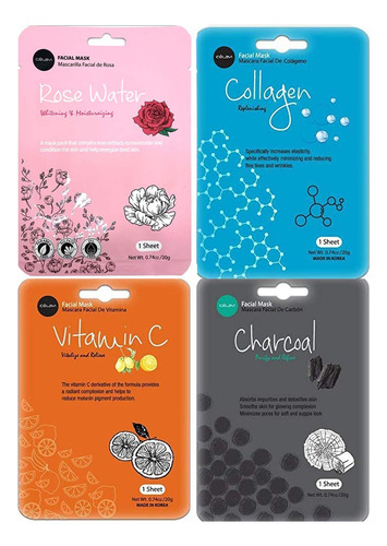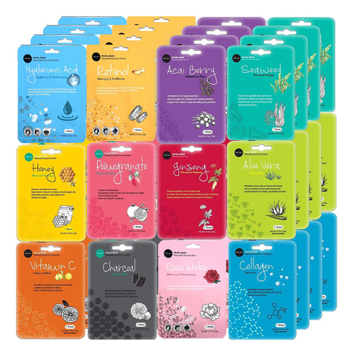 Produtos de beleza coreanos – O conjunto de máscaras para cuidados com a pele facial pode ser sua lembrancinha para mulheres. Máscara de lençol K-Beauty em embalagem a granel. 4 de cada 12 sabores. Total de 48 folhas. — Máscara facial de primeira qualidade — Produtos de beleza coreanos — O conjunto de máscaras para cuidados com a pele facial pode ser sua lembrancinha para mulheres. Máscara de lençol K-Beauty em embalagem a granel. – Hidratação hidratante – Infundida com ingredientes botânicos naturais – Terapia revitalizante da pele – Uma experiência profundamente hidratante, nossos lençóis de máscara facial conferem umidade vital à sua pele – Nossas máscaras faciais de colágeno ajudam a criar uma pele mais firme, saudável e equilibrada para uma confiança radiante.