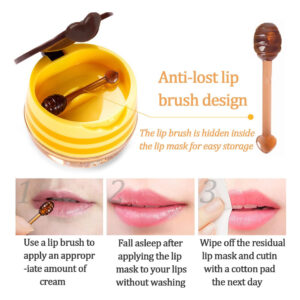 Características: – Rica em extrato natural puro de mel e morango, vitamina E e outras fórmulas essenciais, protegem e hidratam os lábios e proporcionam uma sensação confortável de cuidado com a pele. – Contém ingredientes hidratantes de própolis, que podem suavizar a cutina envelhecida dos lábios e manter a pele dos lábios lisa e hidratada. – Há uma pequena vértebra na embalagem, que pode ser inserida na membrana labial após o uso. – De tamanho pequeno, pode ser transportado e usado convenientemente. – Bee Lip Balm: máscara labial para dormir, máscara labial de abelha, máscara labial, pote de mel, própolis hidratante protetor labial com bastão, hidrata e cuida dos lábios e proporciona saúde e beleza aos lábios – Ingredientes naturais puros: própolis e vários extratos de frutas, como morango, melancia, limão e tocoferóis, hidratam e cuidam dos lábios e trazem o maravilhoso prazer de doçura e lubrificação – Hidratação intensa: a máscara labial contém ricos fatores hidratantes, que podem penetrar rapidamente na pele, fornecer nutrição e umidade suficientes na pele e bloqueia firmemente a umidade, deixando os lábios macios e macios. O uso regular pode reduzir eficazmente as rugas labiais – Design bonito: design delicado e pequeno de pote de mel, pequeno e fácil de transportar. A embalagem é equipada com pequenas vértebras em bastão, que podem ser inseridas na máscara labial após o uso, o que é conveniente para o próximo uso – Como usar: A máscara labial para dormir tem um efeito de cuidado duplo. Acorde de manhã e esfolie facilmente a pele envelhecida com um toque. Use à noite para reparar os lábios danificados e secos para torná-los mais bonitos e atraentes no dia seguinte