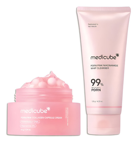 Limpiador con látigo de malvavisco medicube PDRN y crema en cápsulas de colágeno rosa salmón que limpia los poros