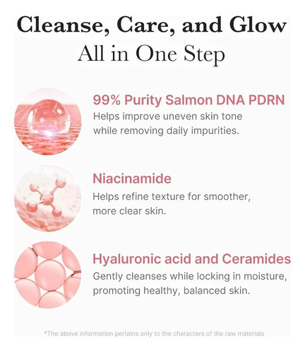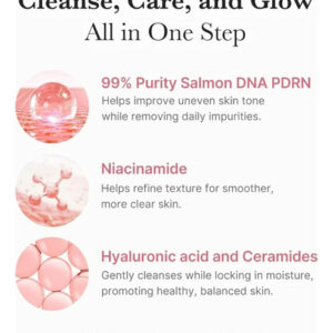 Desarrollado con PDRN y niacinamida para una piel radiante: Formulado con DNA de salmón (PDRN) y niacinamida de una pureza del 99%, este limpiador ayuda a mejorar el tono desigual de la piel y, al mismo tiempo, elimina las impurezas diarias. Deja la piel suave, equilibrada y radiante.