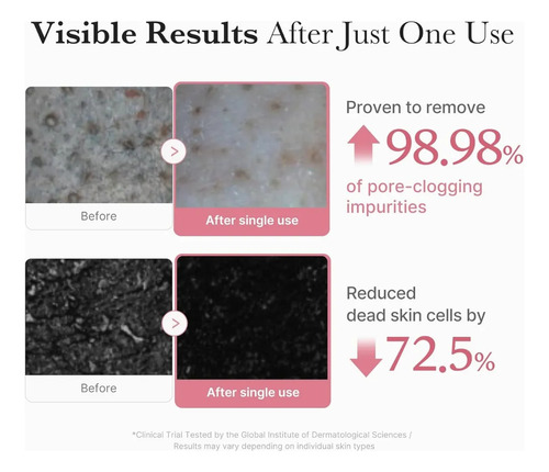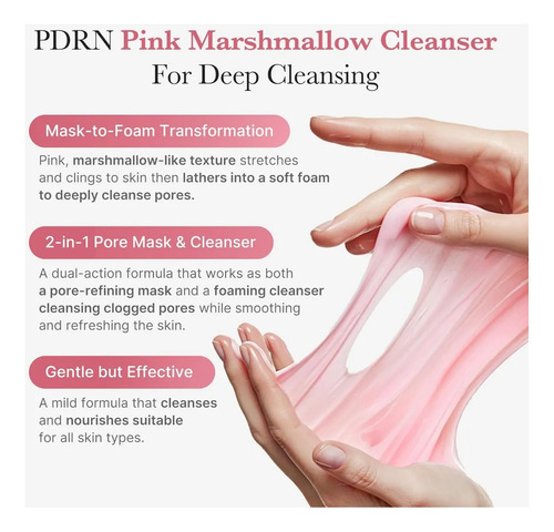 profundos con una textura única de máscara a espuma: comienza con una textura rosada similar a la de un malvavisco que se estira y se adhiere a la piel, y luego se transforma en una espuma suave y cremosa que derrite las impurezas y suaviza la textura de la piel.