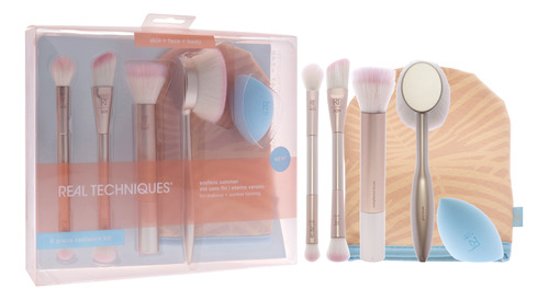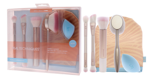 Encontre seu melhor brilho de verão durante todo o ano, da cabeça aos pés, com o kit Real Techniques Endless Summer. Se você é um guru do bronzeamento sem sol ou um amante de bronzeadores, este kit é para seu melhor brilho! O kit inclui pincel de base, pincel iluminador, pincel fixador, pincel de vinco, esponja milagrosa para mistura de maquiagem, pincel de tez, pincel brilhante e luva bronzeadora. Esses pincéis são feitos de cerdas sintéticas UltraPlush cortadas à mão, são veganos e são livres de crueldade.