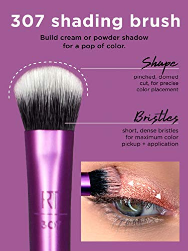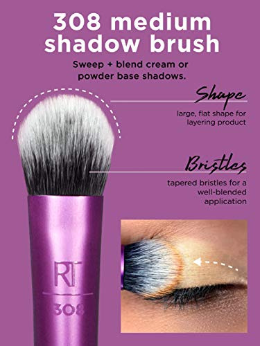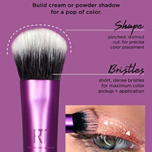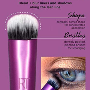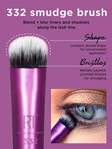 Our Real Techniques Everyday Eye Essentials Makeup Brush Set has every brush you need to create flawless eye looks from natural to glam: Shading Brush: build cream or powder color shades and intensify coverage. Essential Crease Brush: blend powder accent colors seamlessly within the creases of the eyelid. Defining Crease Brush: precisely lines + blends powder shadow for definition within the creases. Definer Brush: creates straight cat eyes and designs across the lid. Smudge Brush: blend and blur eyeliner and shadows along the lash line. Medium Shadow Brush: sweep and blend powder or cream base shadows. Lash Separator: helps separate mascara clumps. Fine Liner Brush: creates crisp lines of liquid or gel eyeliner. Designed by makeup artists. Loved by millions. Real Techniques brings quality makeup brushes and tools used by professional makeup artists to the hands of beauty-obsessed customers around the world. Since 2011, we have been creating tools and accessories to help make the most of your favorite makeup. With a beauty community of over 5 million, Real Techniques strives to inspire, educate, and empower our fans to make the most of their favorite products. Star products like the Miracle Complexion Sponge make blending foundation and concealer effortless while the Everyday Eye Kit a handpicked selection of brushes – make a runway-ready smokey eye easily achievable. Real Techniques makes the craft of makeup artistry easy for anyone to understand, whether theyre striving for the best no-makeup look or creating the next viral TikTok video.