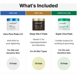 Conjunto de presentes de toner medicube — Conjunto coreano de cuidados com a pele para presentes de Natal, presentes de Natal, conjunto de toner mais vendido da Medicube — Trio de almofadas exclusivo da Medicube: mime sua pele com nosso kit Hero Pad Trio e descubra o brilho radiante e saudável que você sempre desejou. Mergulhe em um mundo de cuidados com a pele eficazes e acessórios chiques que tornam cada rotina um prazer. – Almofadas Zero Pore: AHA+BHA para poros menores – Almofadas Deep Vita C: vitamina C para elasticidade e uniformidade da pele – Almofadas Super Cica: Centella Asiatica para suavizar e saciar. – Almofadas de poros nº 1 da Coreia: conquistando vários prêmios e vendendo 280 milhões de unidades na Coreia do Sul. Fabricado e importado diretamente da Coréia.