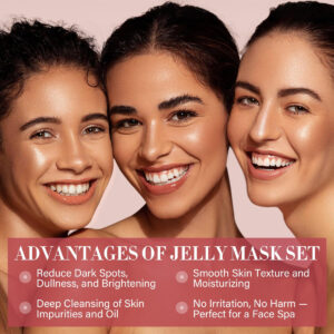 O pacote inclui: 1 x máscara de geleia de vitamina C de açafrão em pó 1 x máscara de geleia de chá verde em pó 1 x máscara de geleia de rosa em pó 1 x tigela de mistura de máscara facial 1 x espátula de máscara 1 x colher de medição O tempo de aplicação da máscara facial não deve ser muito longo, porque a máscara de gelatina é fácil de secar após ser aplicada no rosto. Se o tempo de aplicação for muito longo, a máscara facial começará a absorver a umidade da pele, deixando-a seca. O tempo recomendado é de 15 a 20 minutos. Se seu rosto estiver seco logo após a aplicação, remova a máscara gelatinosa com antecedência, em vez de esperar pelo tempo recomendado. – Máscara gelatinosa de vitamina C de cúrcuma Máscara de geleia de vitamina C de açafrão Ingredientes principais A vitamina C e a cúrcuma têm um efeito mais forte na remoção do embotamento. A vitamina C ajuda a prevenir a pigmentação, ilumina o tom da pele e dá à pele um brilho natural. Também acalma a vermelhidão e desbota as linhas finas e as rugas. – Máscara de geleia de rosa A máscara de geleia de rosa é rica em ingredientes ativos de rosa, o extrato de pétalas de rosa tem efeitos hidratantes profundos, antienvelhecimento e até mesmo tonificação da pele. Ela esfria, acalma, limpa, nutre e rejuvenesce a pele. – Máscara de geleia de chá verdeA máscara de geléia de chá verde é feita com o melhor extrato de chá verde, rico em antioxidantes, ajuda a combater os radicais livres, reduz a inflamação e promove uma tez radiante. Usar uma máscara de chá verde pode ajudar a acalmar a pele, controlar a oleosidade, diminuir os poros, antioxidante, antienvelhecimento, reduzir os danos dos raios ultravioleta do sol na pele e obter uma pele clara e saudável. – Máscara facial Hydrojelly Jelly Este produto é diferente da máscara de lama tradicional ou do papel de máscara, dando à pele uma camada protetora fechada. Ele cria uma camada oclusiva, hidratando profundamente e empurrando profundamente todos os nutrientes benéficos para a pele, o que aumenta a eficácia da máscara de gelatina. Ajuda a aumentar o colágeno, aumentar a elasticidade, clarear, apertar e revitalizar a pele. – Presente para ele e ela – Máscara facial Conjunto de presentes para cuidados com a pele O conjunto de máscaras faciais Jelly é adequado para todos os tipos de pele, incluindo pele seca, normal, oleosa, mista, sensível e irritante. Nosso conjunto de máscaras RIHAKO SPA atende às suas necessidades de spa facial. Nosso conjunto de máscaras faciais Jelly é perfeito para presentes de Dia das Mães, presentes de Dia dos Namorados, presentes de aniversário, presentes de Ano Novo e aniversários.