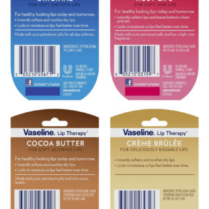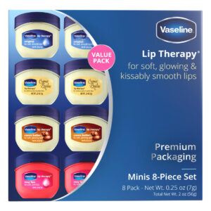 Eleve sua rotina diária de cuidados labiais com a marca confiável Vaseline. O conjunto Mini Vaseline Lip Therapy apresenta quatro fórmulas irresistíveis para qualquer lugar (2 de cada) para lábios macios e deliciosamente beijáveis. – PRODUTOS DE VASELINA PARA CUIDADOS LABIAIS: acalme e reviva seus lábios secos e opacos com um conjunto de 8 fórmulas labiais não pegajosas e não oleosas em pequenos frascos de vaselina. – TERAPIA LABIAL COM VASELINA: lábios naturalmente brilhantes são fáceis de obter com suavizantes, fórmulas curativas de vaselina que mantêm a umidade duradoura. – Cuidado labial sedutor: torne-se natural com o Original ou adicione um aroma leve e irresistível aos lábios com Creme Brulee, manteiga de cacau ou Lábios rosados levemente coloridos. – Mini protetores labiais de vaselina para qualquer lugar: as versões em miniatura da icônica embalagem de vaselina cabem perfeitamente no bolso ou na bolsa do casaco, oferecendo proteção contínua aos lábios em qualquer lugar. – VASELINA PARA LÁBIOS BRILHANTES: cada mini frasco de 0,25 onças do mini conjunto Vaseline Lip Therapy oferece lábios macios, macios e nutridos!