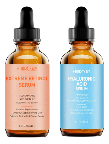 +1 Conjunto de sérum facial Herolabs Sérum de retinol e sérum de ácido hialurônico para rosto Sérum antienvelhecimento Conjunto de cuidados com a pele para mulheres Sérum para suavizar as rugas e firmes — Conjunto de cuidados com a pele: este conjunto de presente inclui sérum de retinol e sérum de ácido hialurônico. Dois soros faciais antienvelhecimento, formulados com nossos ingredientes mais ativos para sua rotina noturna, aumentam visivelmente o brilho, hidratam e diminuem o embotamento, ajudam a diminuir a aparência de linhas finas e fornecem benefícios antioxidantes e antienvelhecimento eficazes. – SÉRUM ANTIENVELHECIMENTO: O sérum de retinol +1 HEROLABS para rosto é a melhor escolha para entusiastas do retinol antienvelhecimento. Baseado em uma fórmula exclusiva de retinol com vitamina B5, este sérum tem excelente atividade SOD que retarda drasticamente o envelhecimento celular e aumenta a produção de colágeno para suavizar as rugas visíveis a olho nu. – HIDRATAR E SUAVIZAR: O sérum de ácido hialurônico para rosto fornece hidratação intensa para uma pele com aparência mais suave. O sérum hidratante penetra mais profundamente nos tecidos da pele para reter a umidade de dentro para fora, hidratando profundamente, nutrindo e dando volume à pele. – COMO USAR: Aplique o sérum de retinol à noite, seguido pelo sérum de ácido hialurônico. Aplique de 3 a 5 gotas de sérum todas as noites ao limpar a pele; para obter melhores resultados, siga com hidratante. Dica importante: aplique protetor solar diariamente ao usar retinol em uma rotina de cuidados com a pele. – INOVAÇÃO ANTIENVELHECIMENTO EM QUE VOCÊ PODE CONFIARNossos soros faciais foram desenvolvidos por uma equipe de especialistas e técnicos experientes na área de cuidados com a pele e são reconhecidos por dermatologistas e líderes do setor de beleza por sua incrível eficácia. Com base em testes com consumidores, mais de 90% das pessoas relatam que sua pele fica mais lisa, mais jovem e mais firme.
