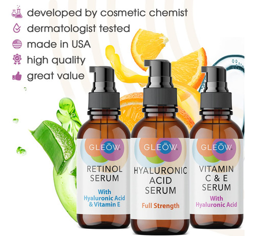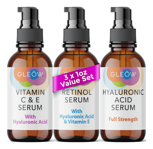 Conjunto De Sérum Gleow Retinol, Vitamina C E Ácido Hialurôn
