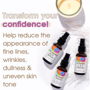 – Melhore sua rotina noturna de cuidados com a pele com nosso sérum facial Retinol, um tipo de retinóide. Este sérum, enriquecido com ácido hialurônico, vitamina E e aloe vera, ajuda a suavizar a aparência de rugas e linhas finas para mulheres e homens.