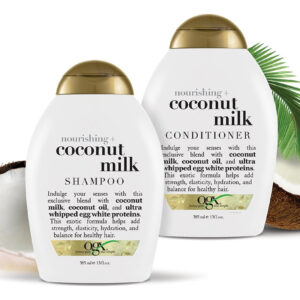 Key Features: – Ultra-Hydrating Blend: Enriched with coconut milk and coconut oils for intense moisture and hydration. – Protein-Rich Formula: Contains whipped egg white proteins to strengthen hair, enhancing its natural elasticity. – Brilliant Shine: Leaves hair with a super shine, reflecting the vibrancy of healthy hair. – Subtle Tropical Scent: Infused with a light and subtle coconut fragrance, reminiscent of the tropics. – Gentle Nourishment: Suitable for all hair types, providing gentle care and nourishment. Fact Sheet: – Product Type: Hair care set – Ingredients: Coconut milk, coconut oils, whipped egg white proteins – Suitable For: All hair types – Volume: Shampoo and conditioner typically come in various sizes; actual volume not provided – Package: Set includes both shampoo and conditioner – Usage: Intended for regular use Indulge in the essence of a tropical escape with this Coconut Milk Shampoo & Conditioner set, designed to transform your hair care routine into a luxurious experience. This dynamic duo is expertly formulated to deliver the rich, deeply moisturizing benefits of coconut milk and oils, paired with the fortifying properties of egg white proteins. Together, they work harmoniously to revive your hair, yielding a mane thats not only stronger and more resilient but also dazzles with an enviable luster. The rich, creamy lather of the shampoo washes away impurities while the conditioner deeply penetrates to nourish and hydrate, preventing breakage and promoting smooth, detangled tresses. Every wash immerses your senses in a delicate, tropical fragrance that lightly perfumes your hair, leaving you feeling refreshed and invigorated. Cater to your hairs thirst for natural ingredients and botanical goodness with this Coconut Milk Shampoo & Conditioner set. Its a perfect choice for those seeking a natural approach to achieve healthy-looking, shiny hair with the bonus of an aromatic tropical twist. Content: 1 shampoo 1 conditioner.