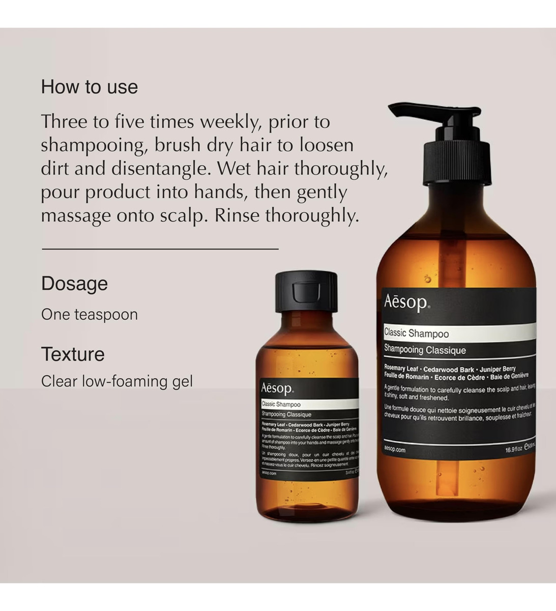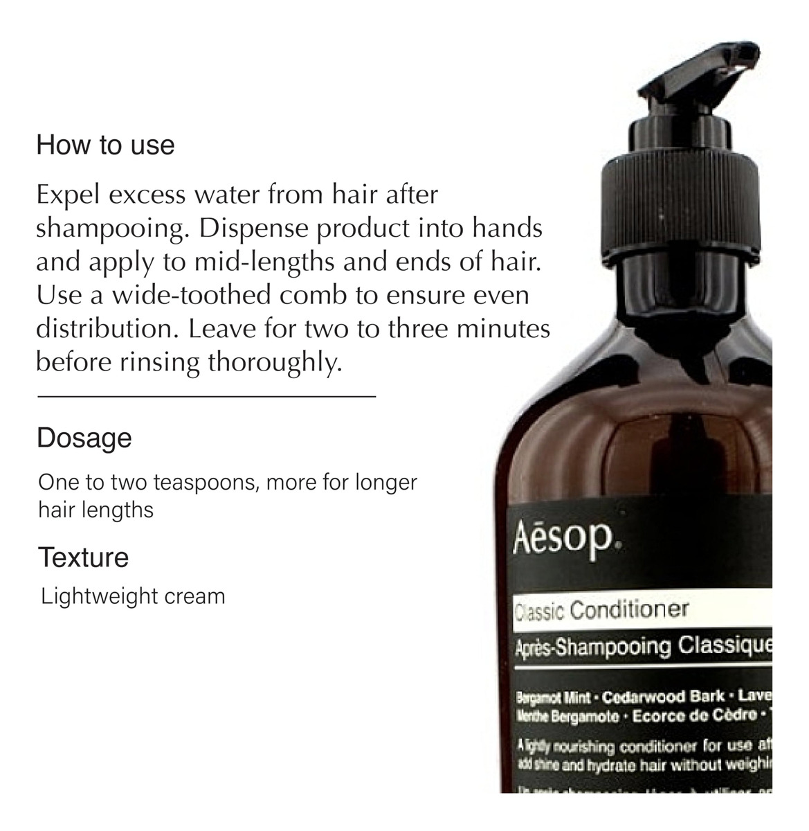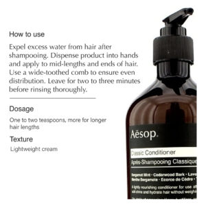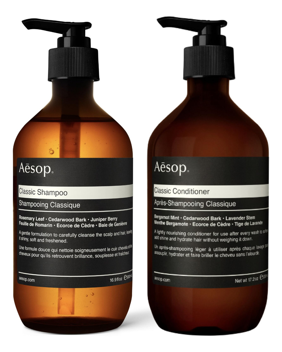 Conjunto de shampoo e condicionador Aesop Classic | Folha de alecrim, casca de cedro e zimbro | 16,9 fl oz | Parabeno, sem crueldade e vegano – Shampoo Aesop Classic: uma formulação suave que mistura óleos de casca de cedro e zimbro para limpar completamente; a proteína vegetal hidrolisada hidrata e suaviza o cabelo. – Condicionador Aesop Classic: um óleo botânico com impressionante hidratação e As propriedades de amaciamento do cabelo se misturam com a proteína vegetal hidrolisada para nutrir, hidratar, desembaraçar e suavizar levemente o cabelo. – Ingredientes principais: folha de alecrim do shampoo, casca de cedro, Bergamota, casca de cedro e caule de lavanda da Juniper Berry and Conditioner — Como usar: coloque uma pequena quantidade de xampu nas mãos e massageie no couro cabeludo molhado. Enxágue bem, espremendo o excesso de água. Após a lavagem, coloque a quantidade desejada de condicionador nas mãos. Aplique uniformemente no comprimento médio e nas pontas dos cabelos. – Adequado para: cabelos normais e para quem lava o cabelo com frequência. Textura de gel transparente com baixa espuma. Hortelã, aroma herbáceo.