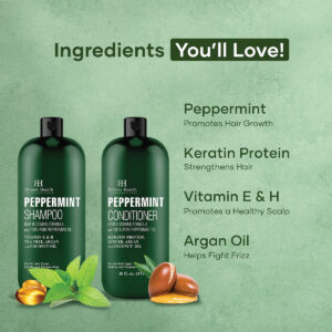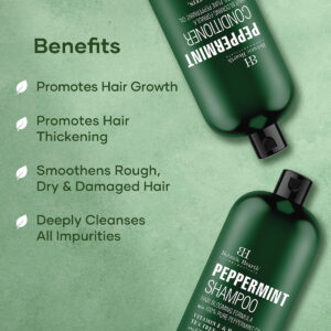 O conjunto de shampoo e condicionador Botanic Hearth Peppermint é feito com óleo de hortelã 100% puro e é um conjunto revigorante de limpeza e condicionador de cabelo enriquecido com uma mistura de ingredientes nutritivos e restauradores para promover cabelos longos e espessos. O óleo essencial de hortelã é conhecido por seu aroma refrescante. Este conjunto de shampoo e condicionador deixará seu cabelo e couro cabeludo limpos, revigorados e revigorados. Conjunto de shampoo e condicionador Botanic Hearth Peppermint, óleo de hortelã 100% puro, é suave o suficiente para uso diário e seguro para cabelos tingidos. Aviso de segurança: Somente para uso externo. Esfregue uma pequena quantidade na parte interna da área do cotovelo para testar qualquer reação alérgica antes de usar. Evite o contato com os olhos. Se ocorrer contato com os olhos, enxágue com bastante água. Mantenha fora do alcance das crianças. Este produto não se destina a diagnosticar, mitigar, tratar, curar ou prevenir nenhuma doença. – Ajuda a promover o espessamento do cabelo: o conjunto de xampu e condicionador com óleo de hortelã vem com proteína de queratina que ajuda o cabelo a ficar mais espesso e forte, combatendo a quebra – Ajuda a promover o crescimento do cabelo: obtenha cabelos visivelmente mais saudáveis e combata a queda de cabelo com uma fórmula especializada que inclui vitamina E e H, hortelã, melaleuca, argão e Óleo de coco – Limpeza profunda: o conjunto de shampoo e condicionador com óleo de hortelã é conhecido por seu aroma refrescante que deixa o cabelo e o couro cabeludo limpos, revigorados e revigorados – Acalma cabelos ásperos, secos e danificados: a hortelã é conhecida por suas propriedades calmantes e refrescantes, que podem ajudar a aliviar a coceira, irritação e inflamação no couro cabeludo – De origem ética e sem crueldade: os produtos Botanic Hearth são feitos ou embalados nos EUA, seguros, saudáveis, sem sulfato, sem parabenos e sem crueldade
