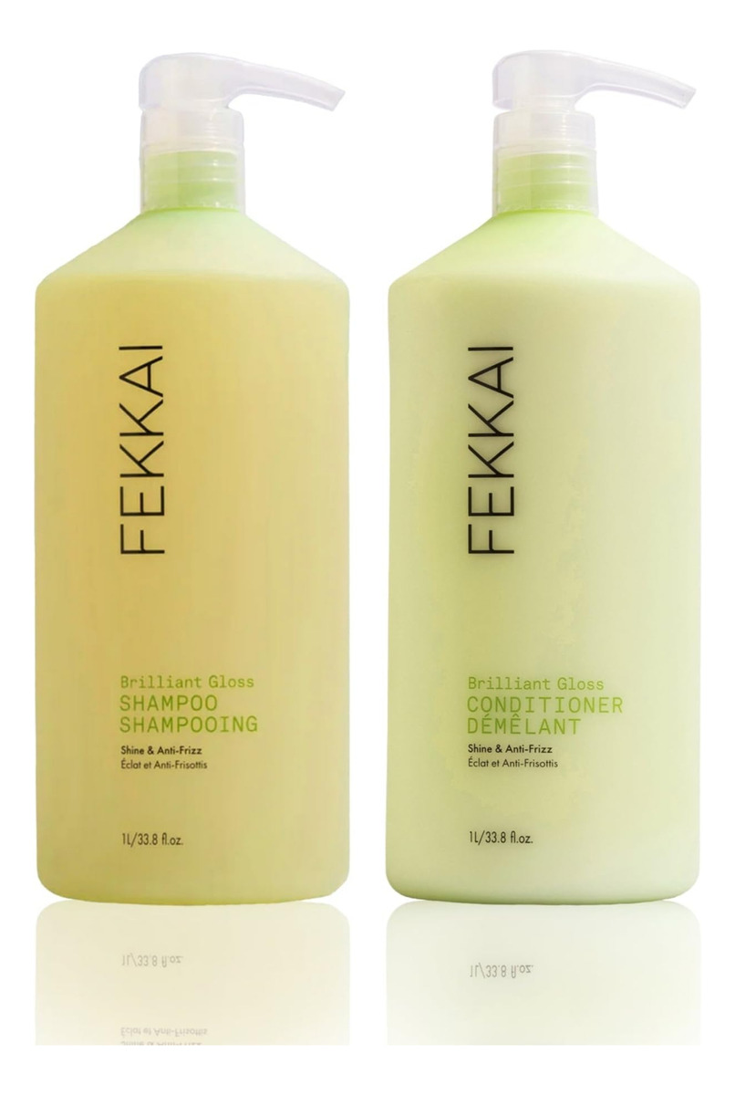 Shampoo FEKKAI Brilliant Gloss (1 litro) e condicionador Brilliant Gloss (1 litro) — PACOTE DE SHAMPOO E CONDICIONADOR — Transforme o sombrio em brilhante! Nosso shampoo hidratante revive, nutre e elimina o frizz, enquanto nosso condicionador brilhante oferece a melhor reposição de umidade. Elas transformam o cabelo com 4 vezes mais brilho. – PRINCIPAIS BENEFÍCIOS – Perfeitas para cabelos secos, lisos e com tendência ao crespo, essas fórmulas são ricas em antioxidantes e vitaminas A e E para ajudar a proteger a queratina natural dos cabelos e reter a umidade. Eles proporcionam deslizamento e brilho sem oleosidade. – INGREDIENTES – O azeite de oliva prensado a frio penetra nas cutículas levantadas do cabelo para um cabelo mais brilhante e liso. O extrato de pera espinhosa fortalece a barreira de umidade do cabelo para evitar a perda de umidade. – DETALHES – Apresenta um aroma de madeiras cremosas, flores e chá verde. Seguro para todos os tipos de cabelo, incluindo queratina e cabelos tingidos. Limpo, vegano, livre de crueldade, sustentável e livre de sulfatos, silicones, parabenos, ftalatos e glúten.